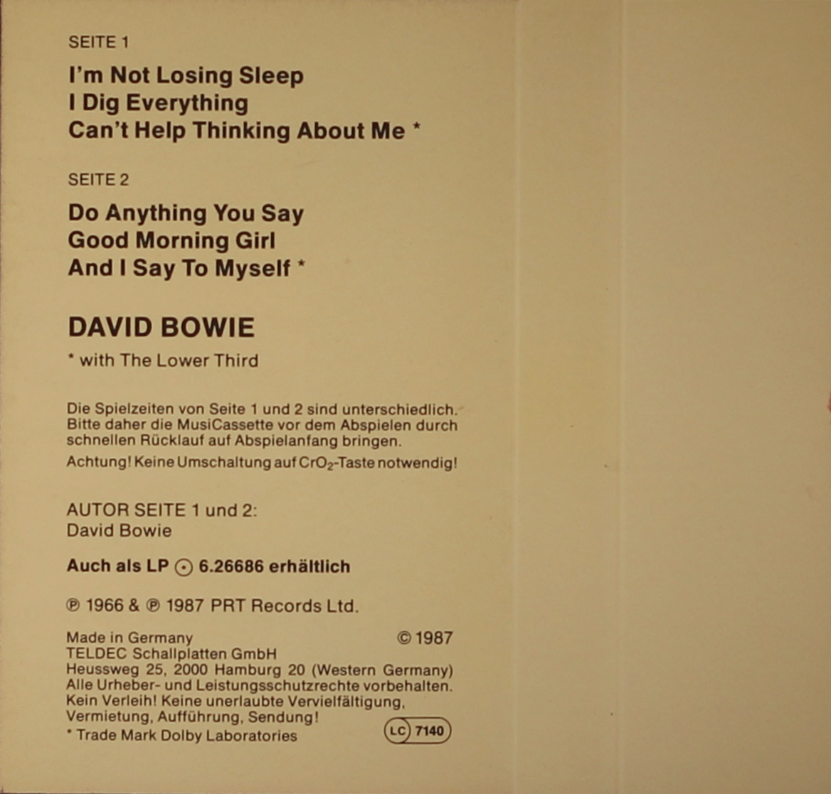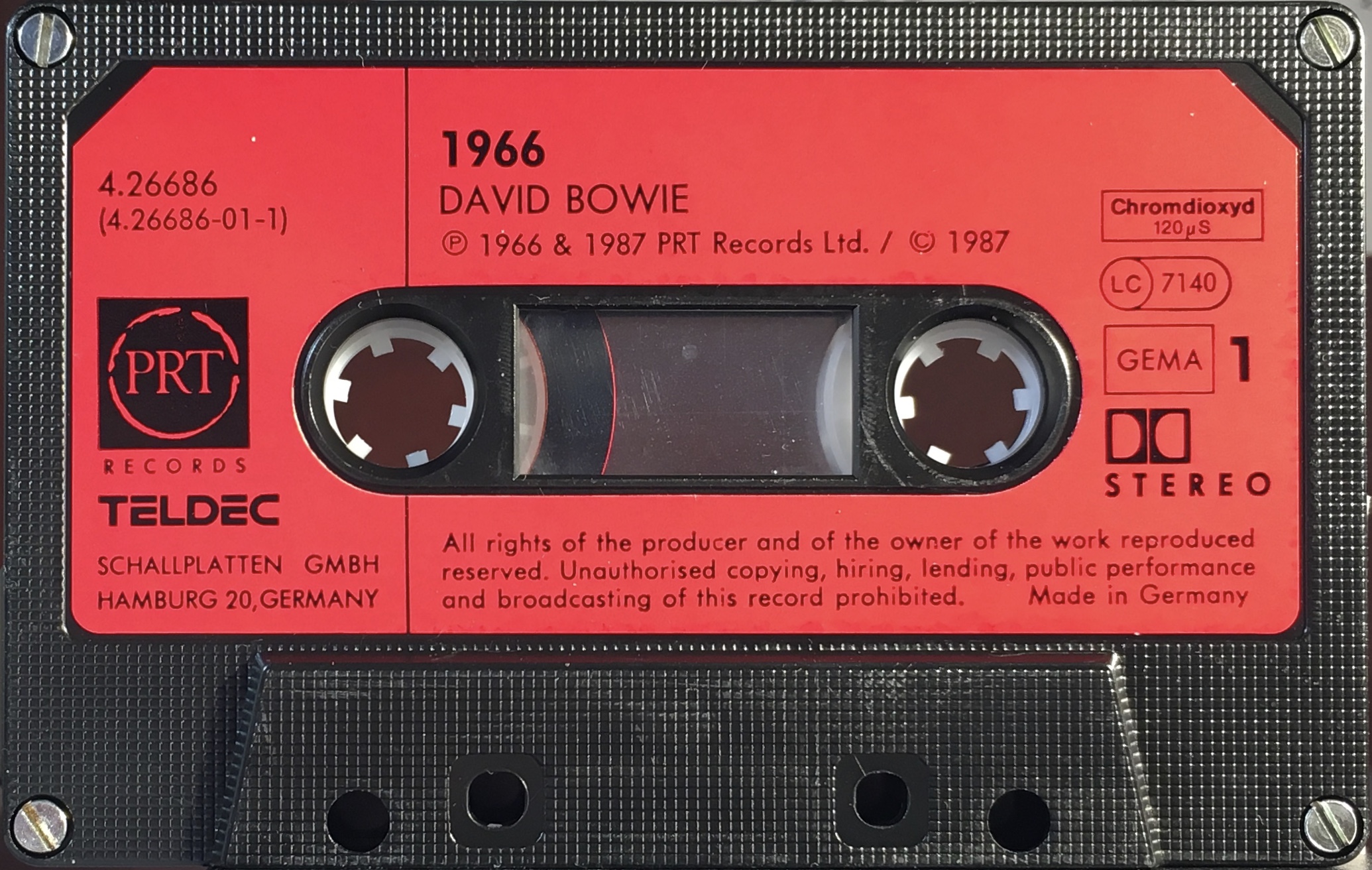 Black ink printed onto red label on black shell; GEMA rights; PRT and Teldec logos on shell.