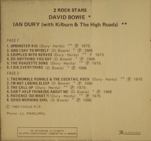 This album contains tracks from David Bowie and Ian Dury as Kilburn & the Highroads.