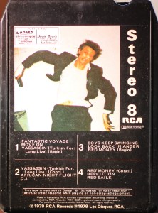 Red box sleeve with white border to cover picture. ‘8 Track Cartridge’ on the top of the front panel and RCA logo on the bottom front panel. The side panels have one Care Information and one blank sides, the top panel is blank.