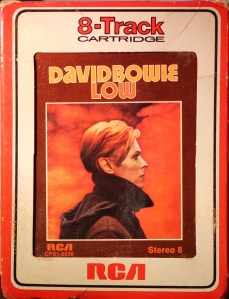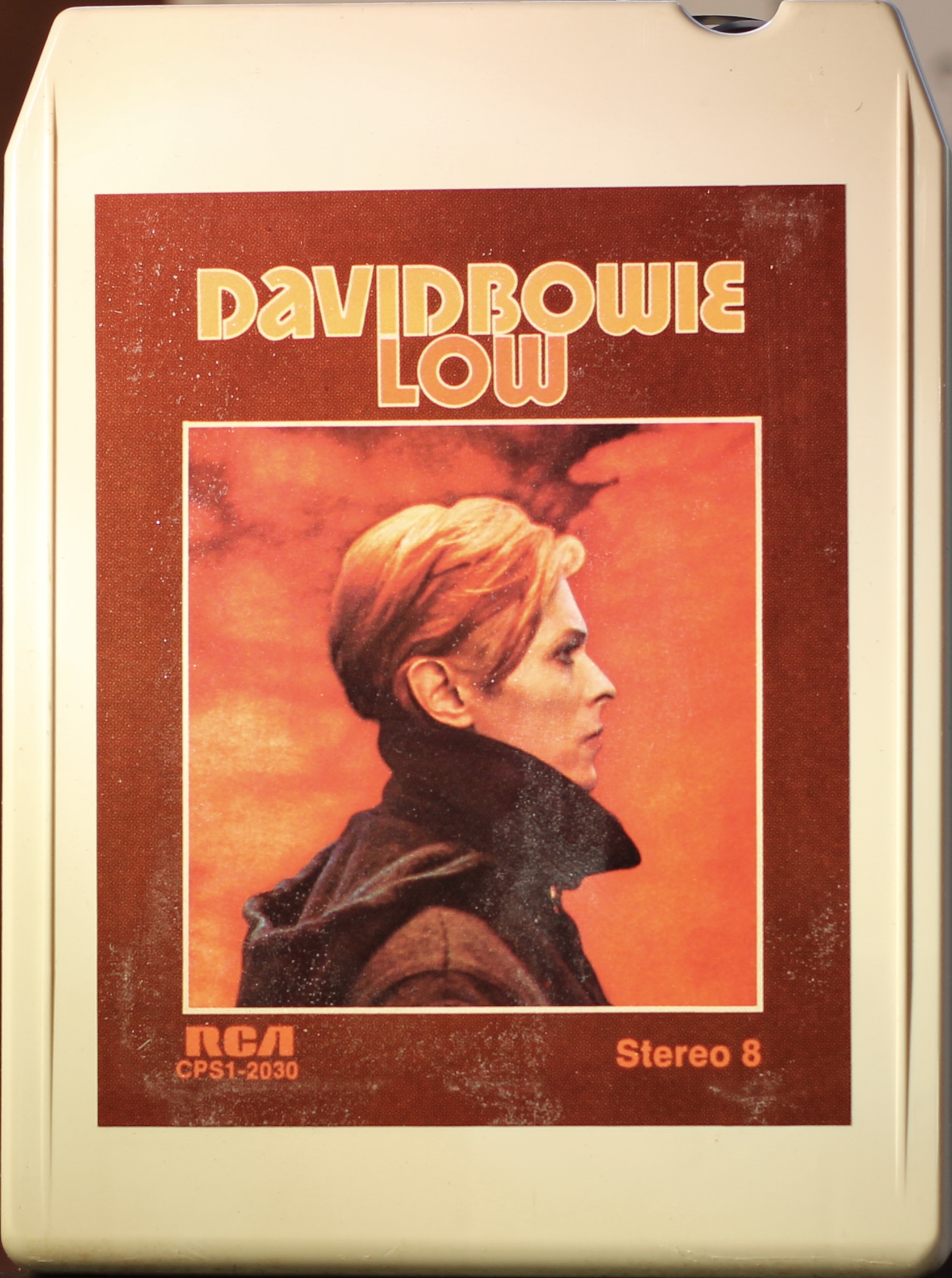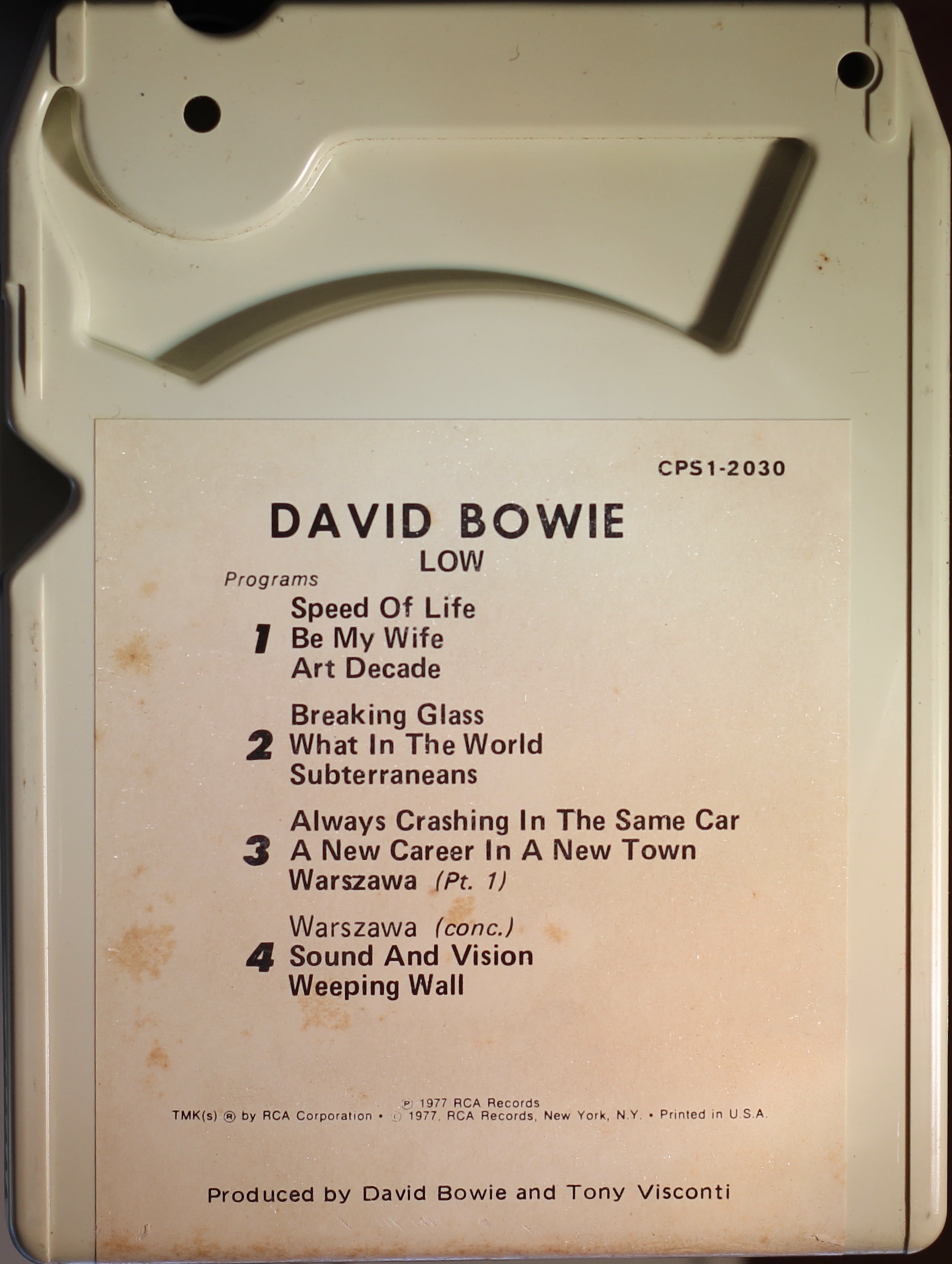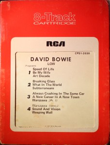 White 8 Track stereo cartridge with cover picture on the front and track running order on the rear.