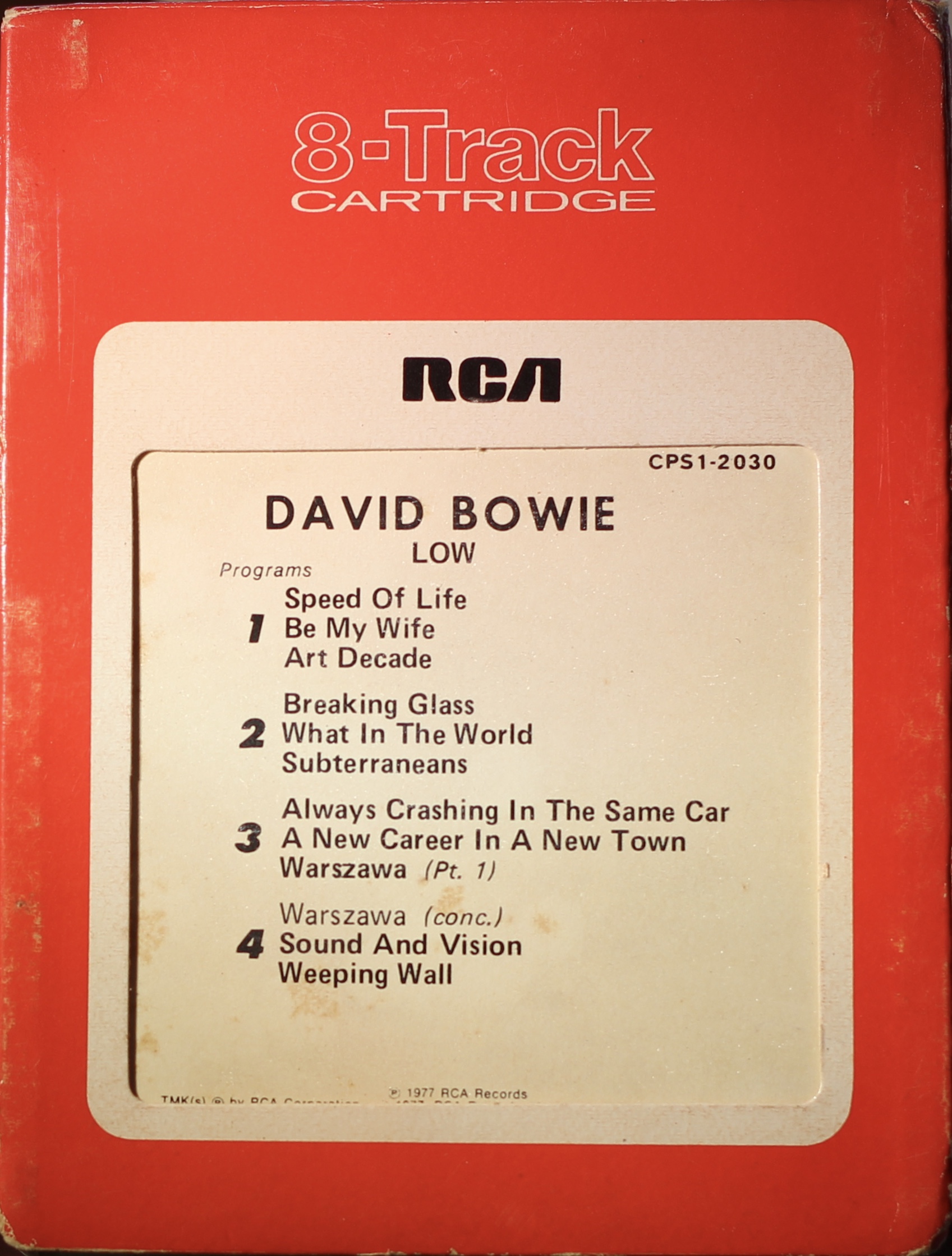 Red box sleeve with white border to cover picture. ‘8 Track Cartridge’ on the top of the front panel and and the top panel and RCA logo on the bottom front panel. The side panels have one Care Information and one blank sides.