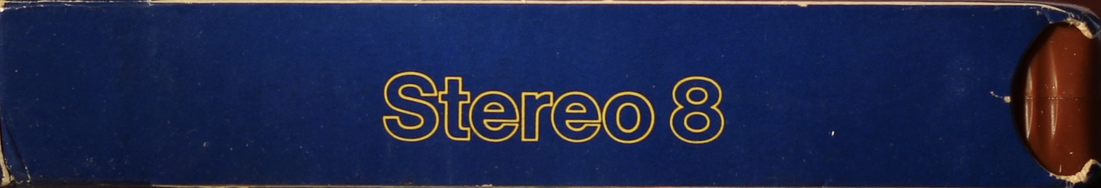 Brown 8 Track stereo cartridge with cover picture on the front and blank rear.