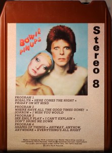 White 8 Track stereo cartridge with cover picture on the front and track running order on the rear.