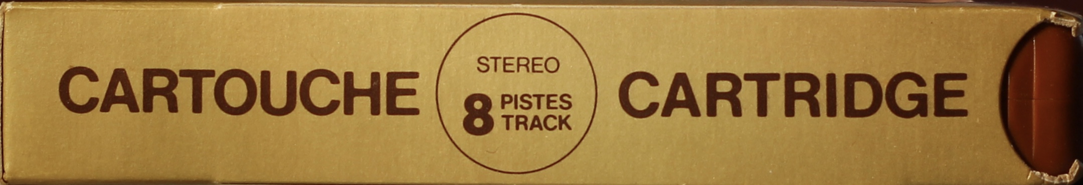 Brown 8 Track stereo cartridge with cover picture on the front and blank rear.