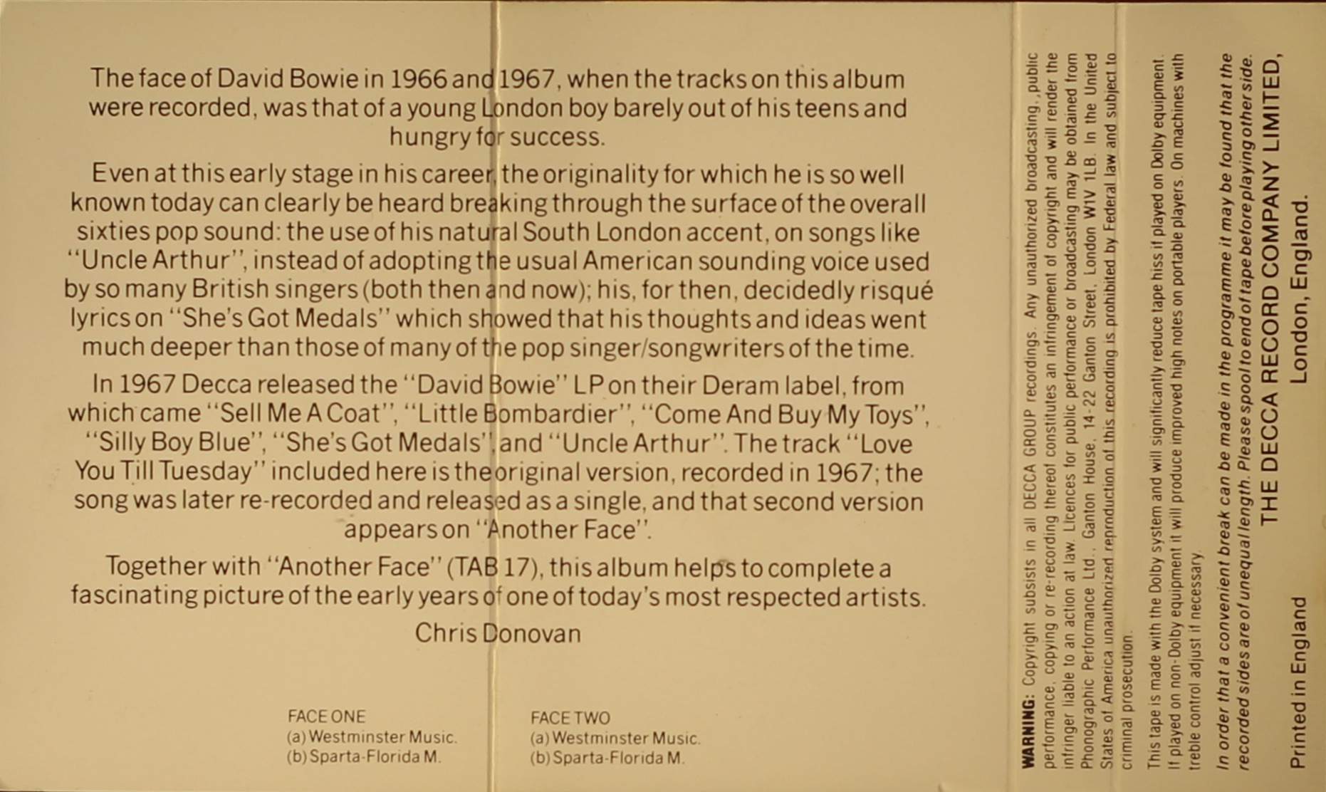 A Second Face: UK; Decca, KTBC 71; 1983.