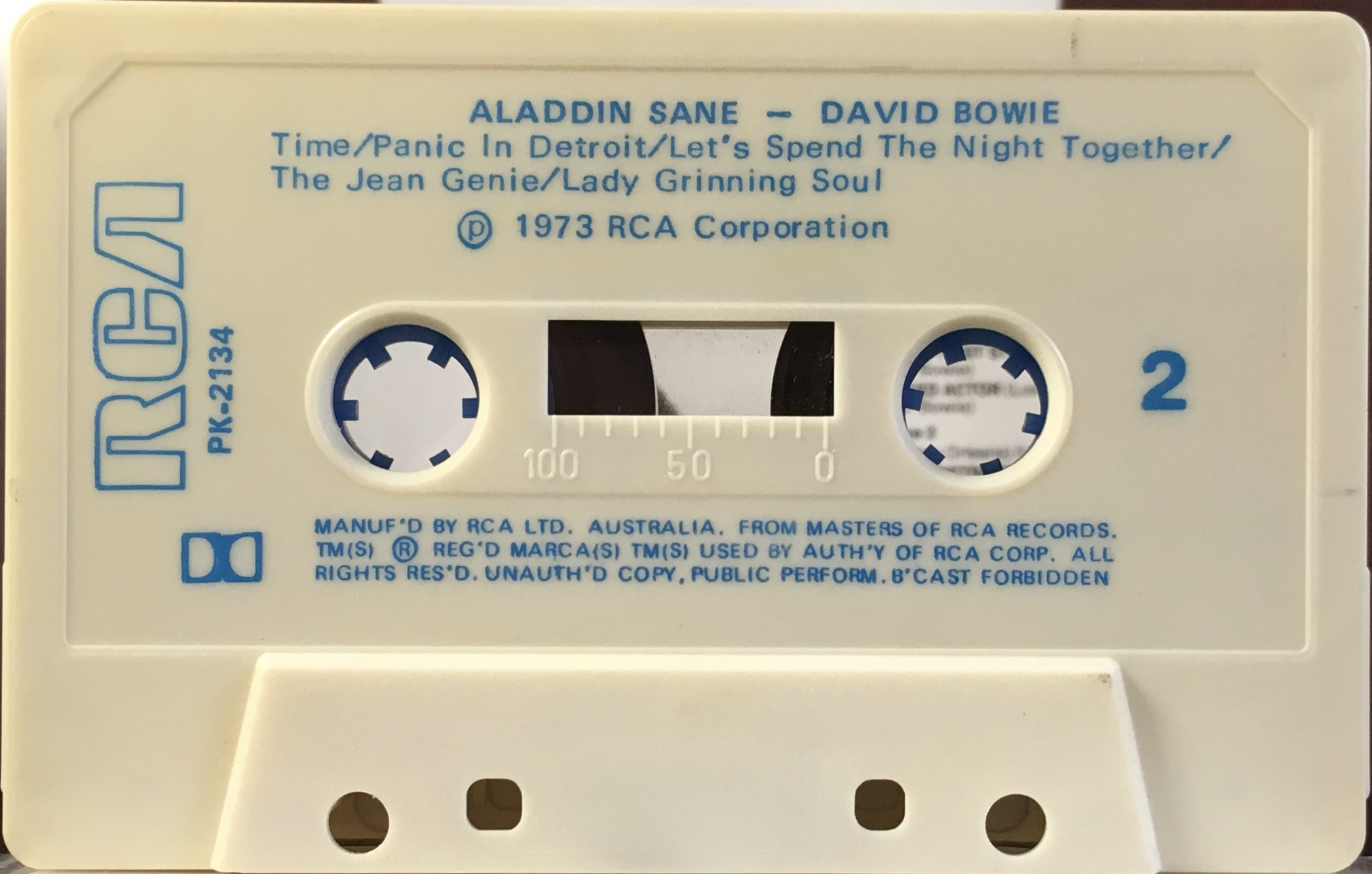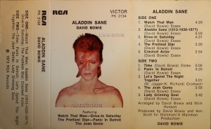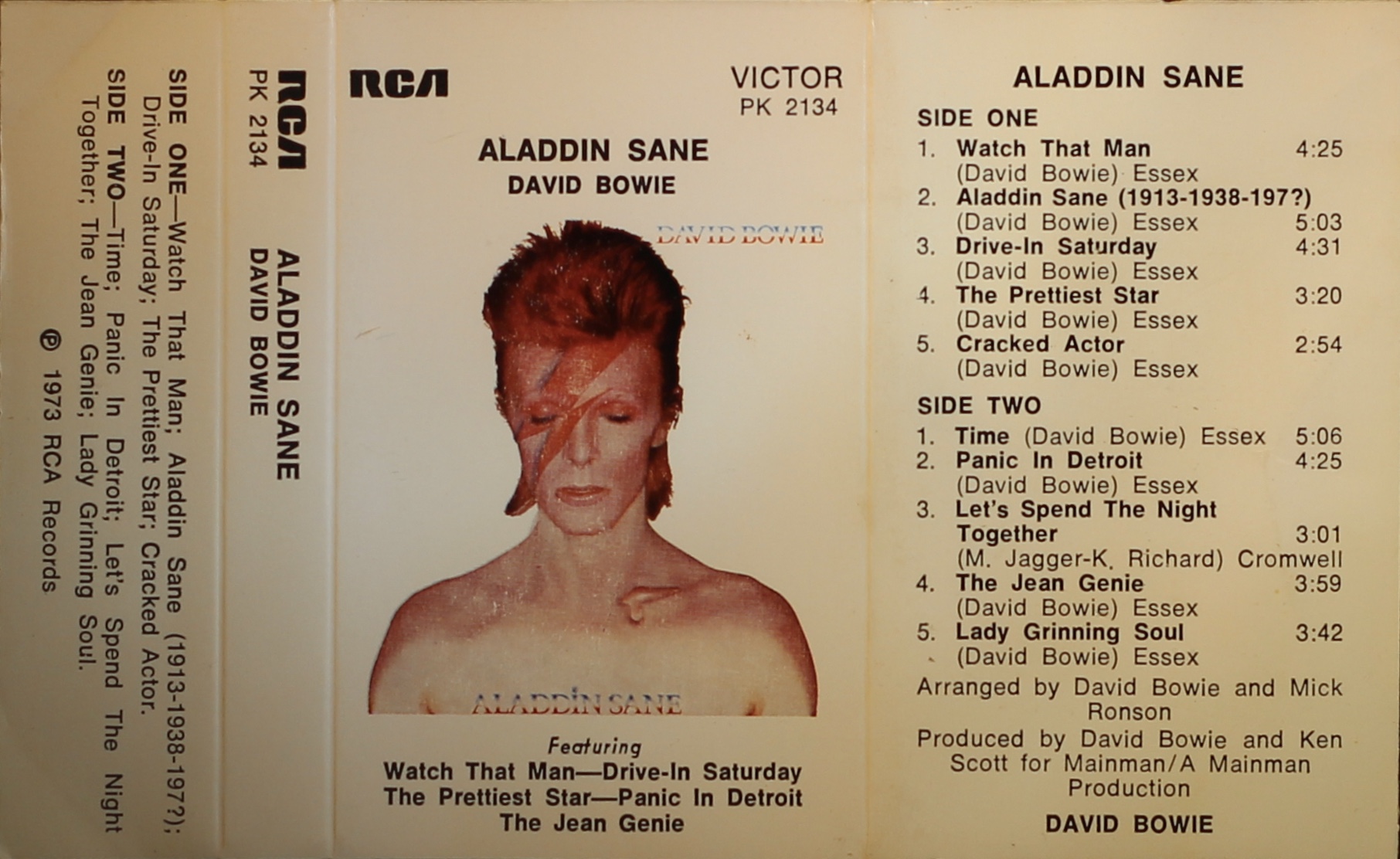 Side 2: Time; Panic In Detroit; Let’s Spend The Night Together; The Jean Genie; Lady Grinning Soul.