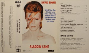 Side 1: Watch That Man; Aladdin Sane (1913-1938-197?); Drive In Saturday; Panic In Detroit; Cracked Actor.