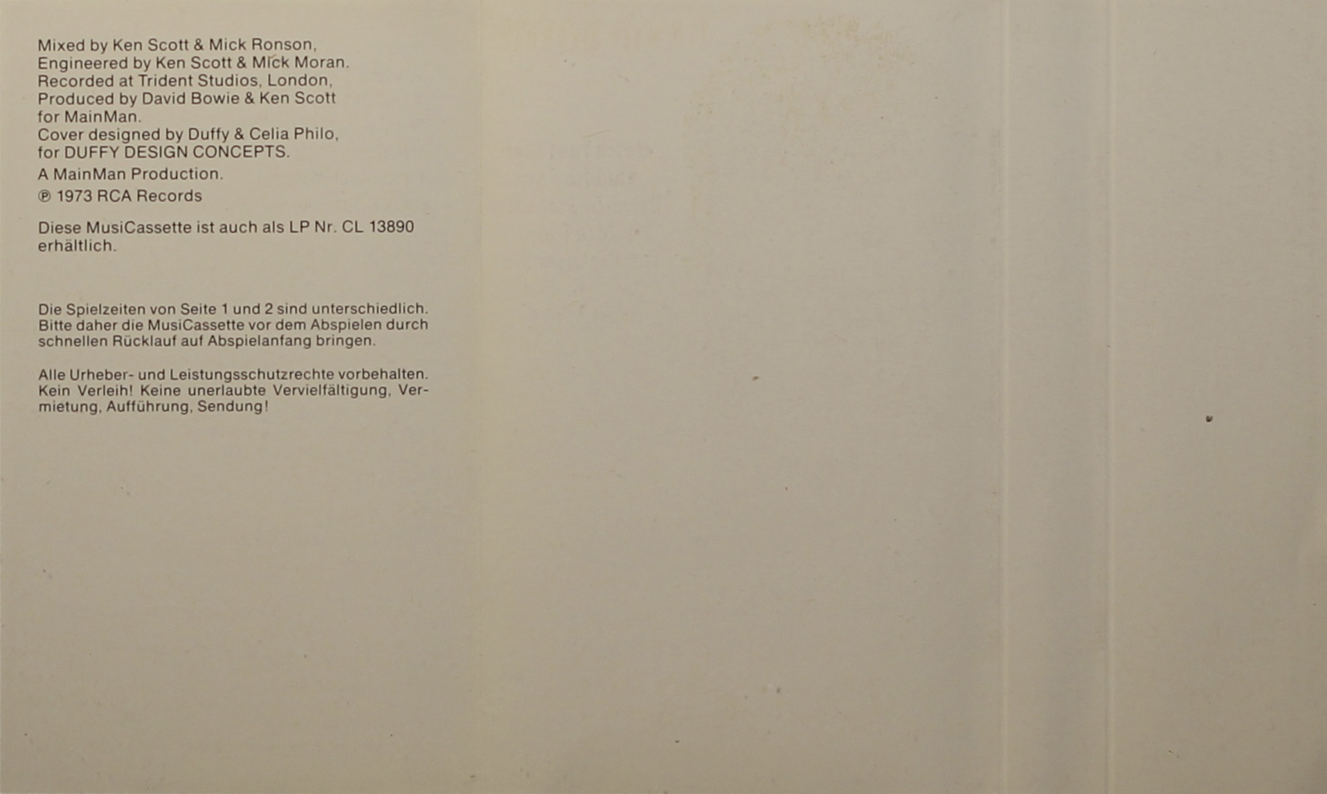 Aladdin Sane: Germany; RCA Victor; CK 13890; 1983.