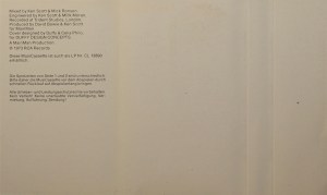 Side 2: Time; The Prettiest Star; Let’s Spend The Night Together; The Jean Genie; Lady Grinning Soul.