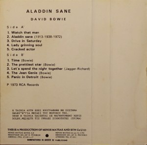Aladdin Sane: Greece; RCA International; CI-TC- RCLP 20167.