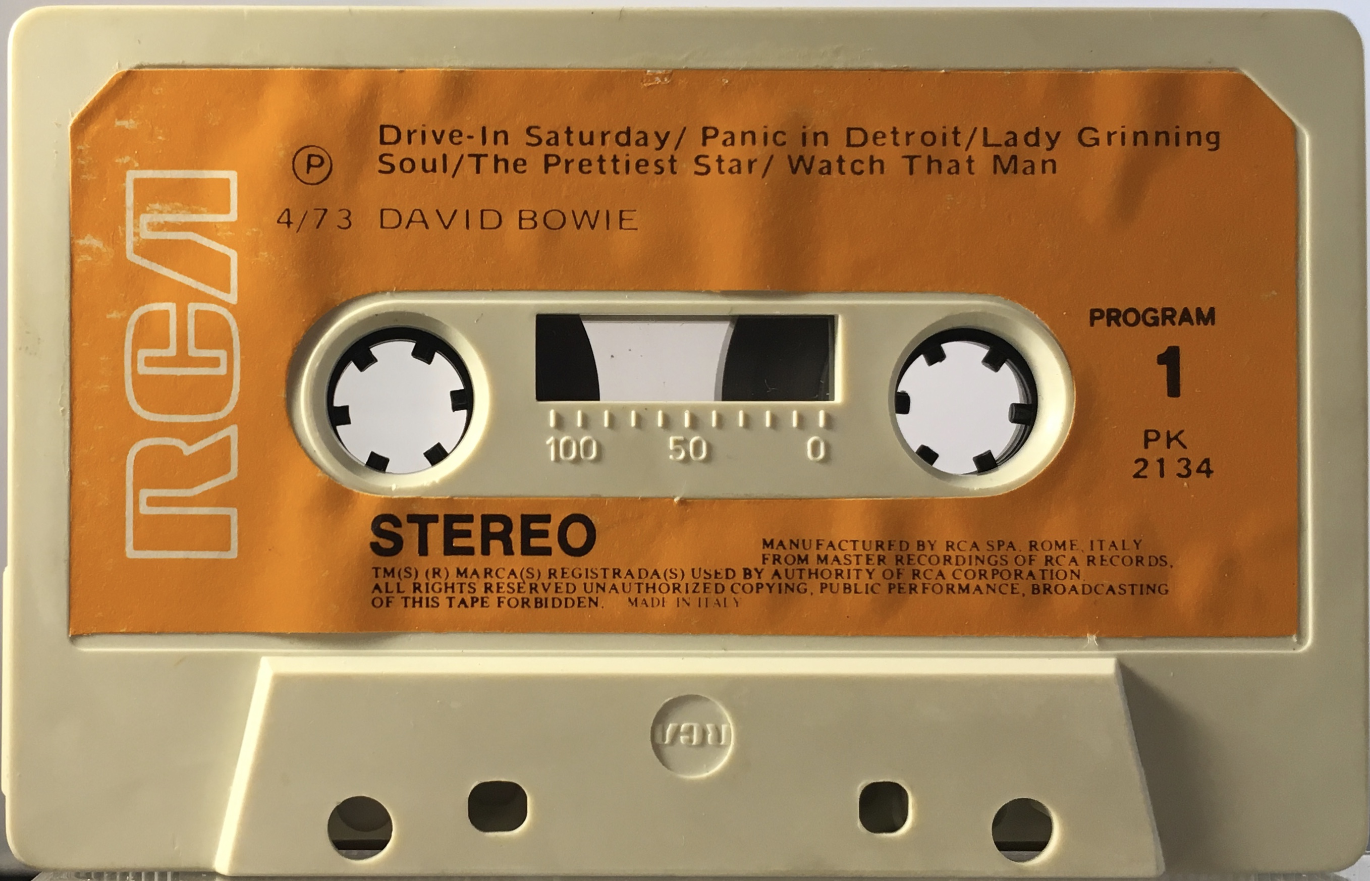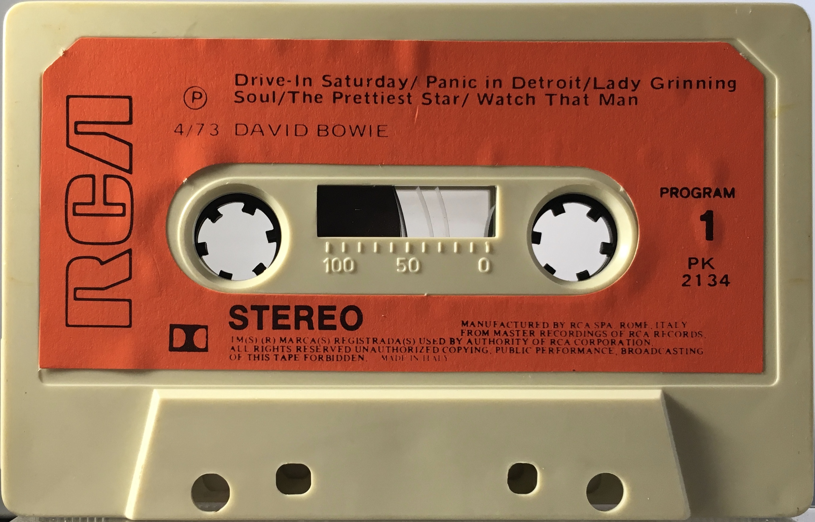 Side 1: Drive In Saturday; Panic In Detroit; Lady Grinning Soul; The Prettiest Star; Watch That Man.