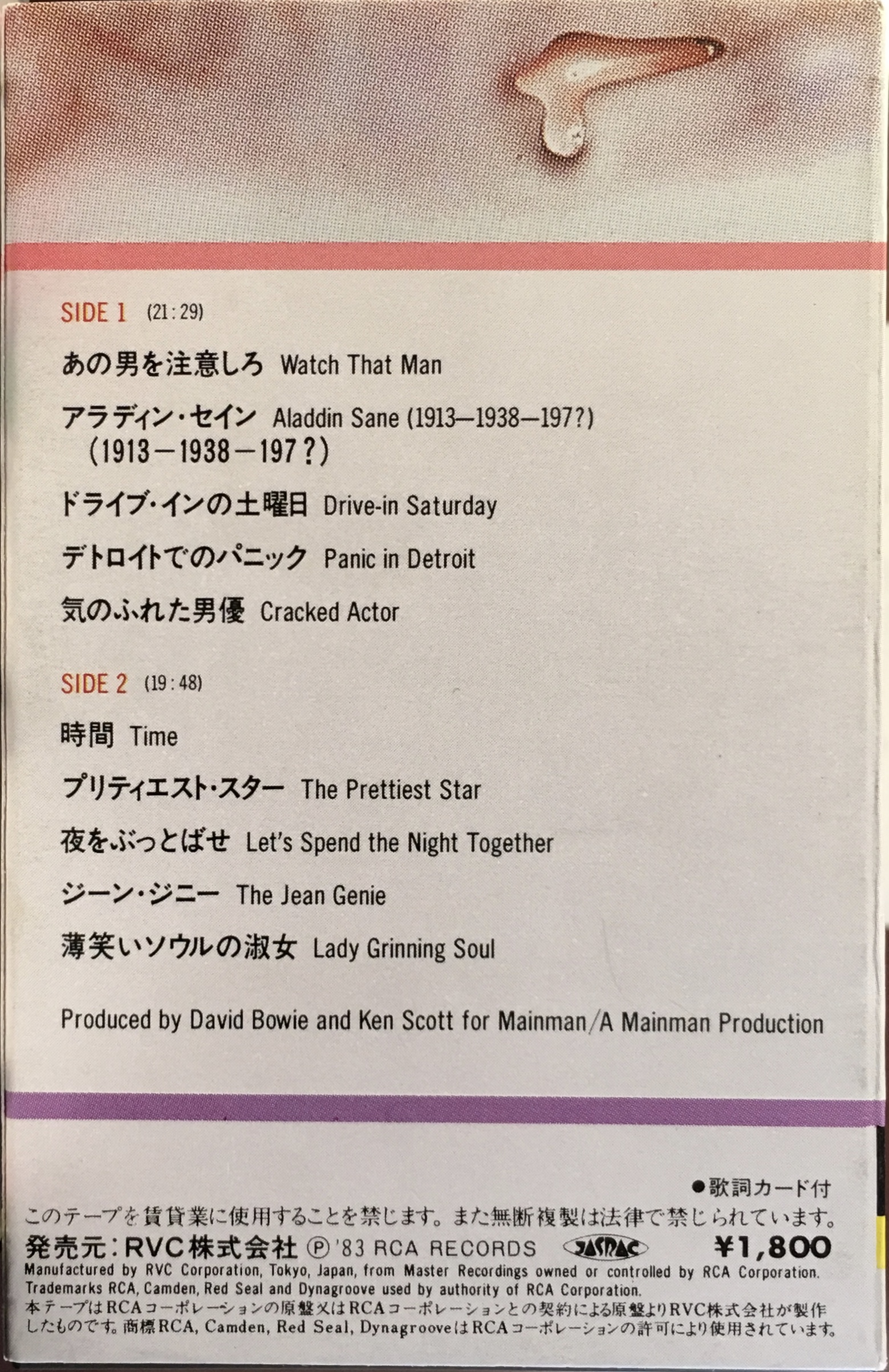 Aladdin Sane; Japan; RCA; RPT-2103 (AYK1-3890); 1983.