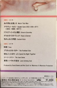 Side 2: Time; The Prettiest Star; Let’s Spend The Night Together; The Jean Genie; Lady Grinning Soul.