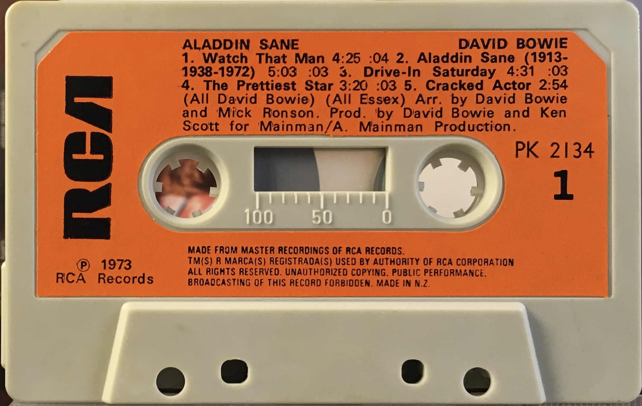 Side 1: Watch That Man; Aladdin Sane (1913-1938-197?); Drive In Saturday; The Prettiest Star; Cracked Actor.
