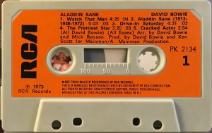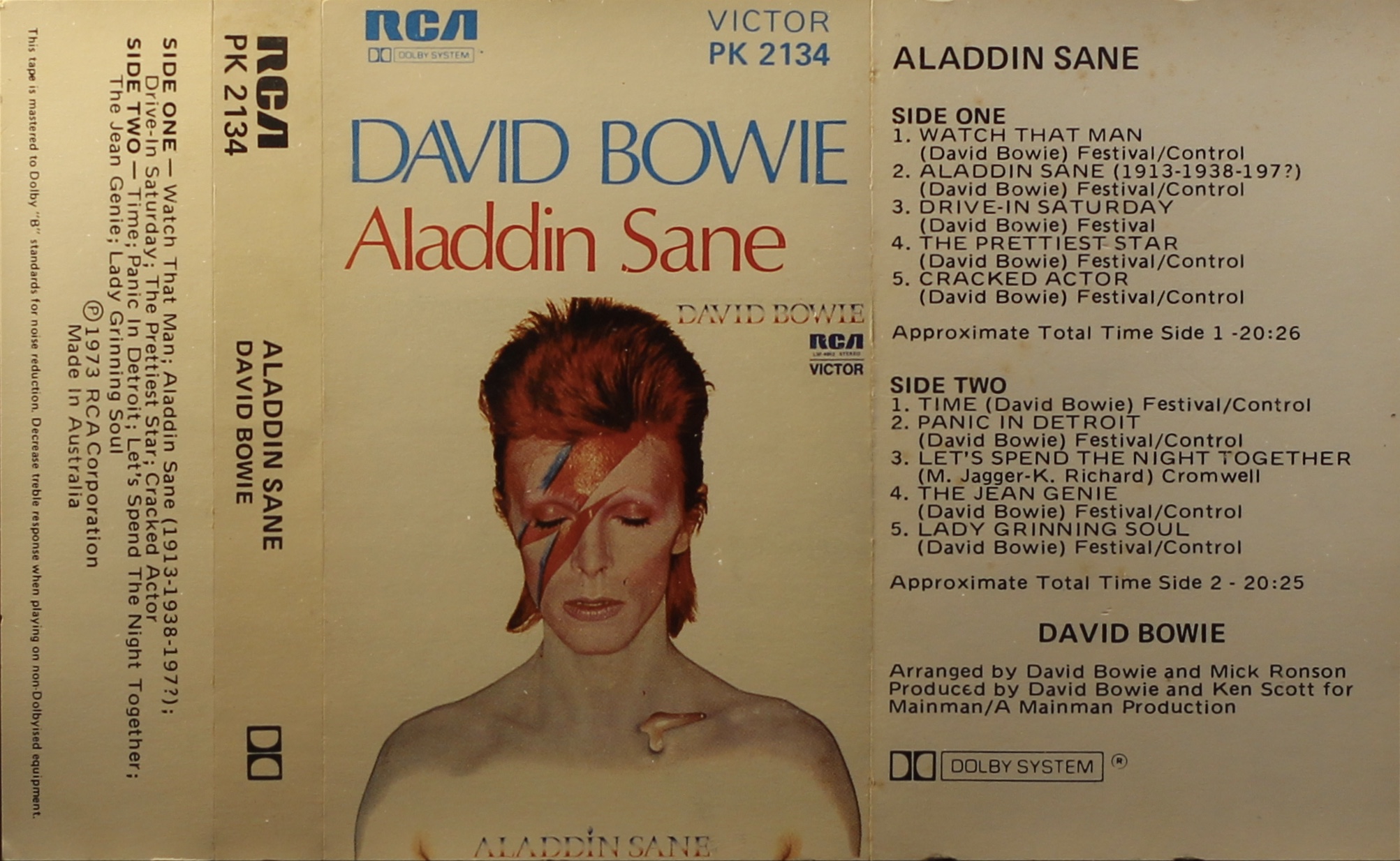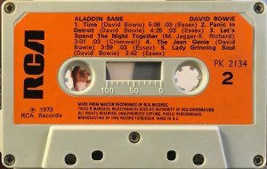 Side 2: Time; Panic In Detroit; Let’s Spend The Night Together; The Jean Genie; Lady Grinning Soul.