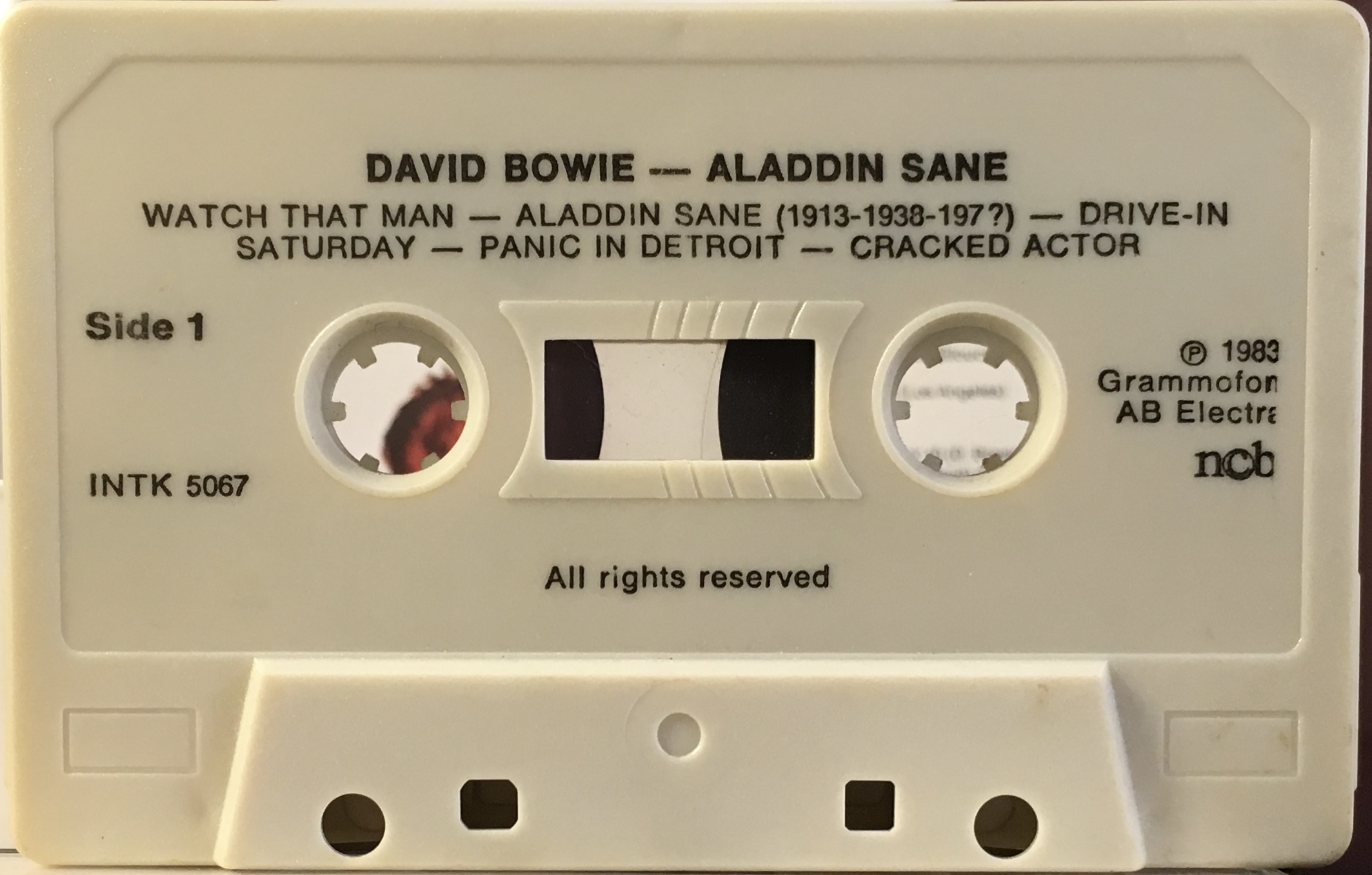 Side 1: Watch That Man; Aladdin Sane (1913-1938-197?); Drive In Saturday; Panic In Detroit; Cracked Actor.