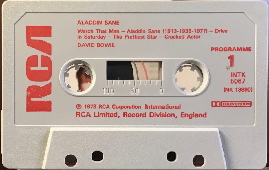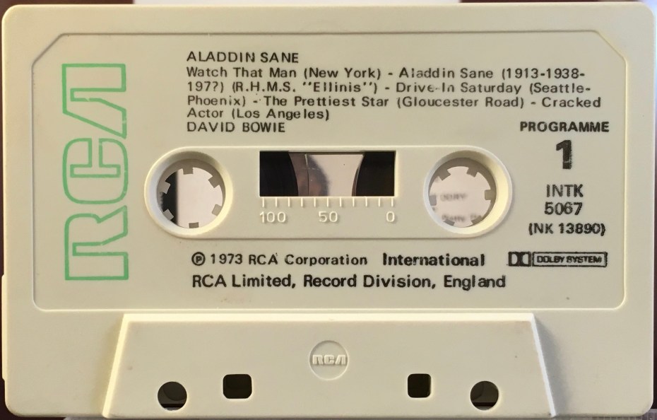 Side 1: Watch That Man; Aladdin Sane (1913-1938-197?); Drive-In Saturday; The Prettiest Star; Cracked Actor.