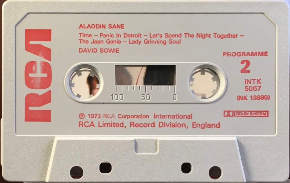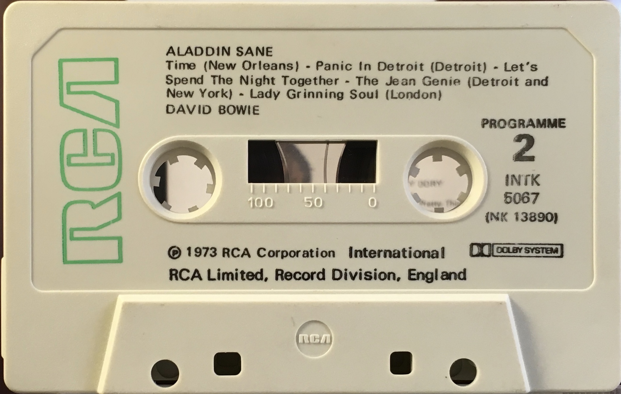 Side 2: Time; Panic In Detroit; Let’s Spend The Night Together; The Jean Genie; Lady Grinning Soul.