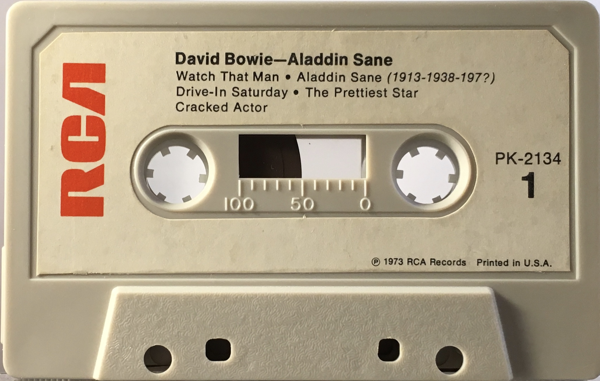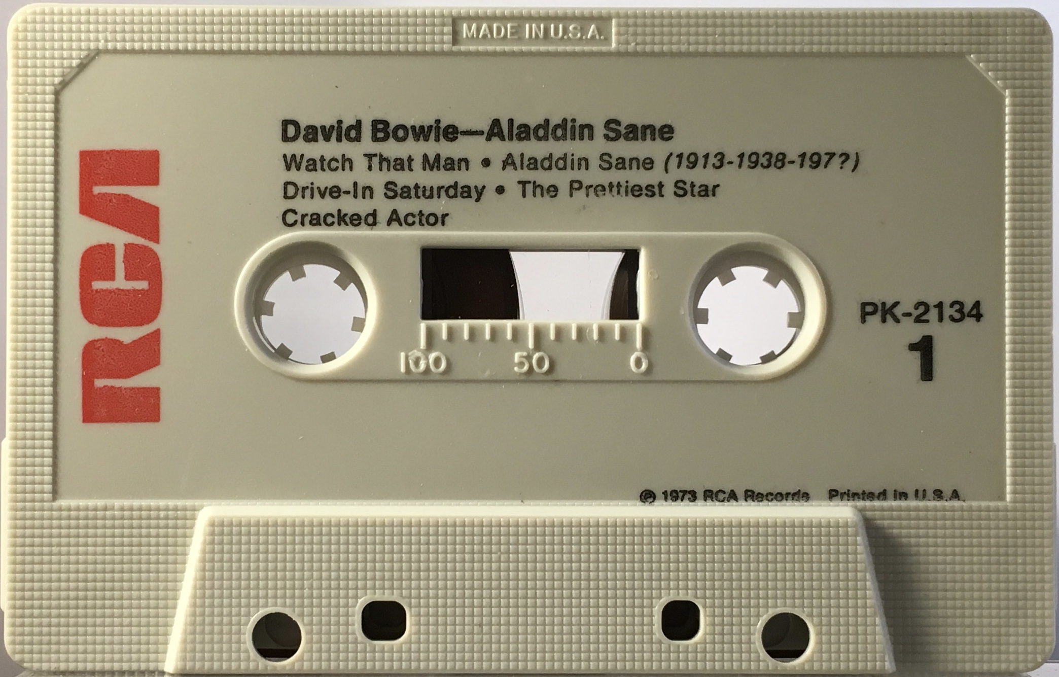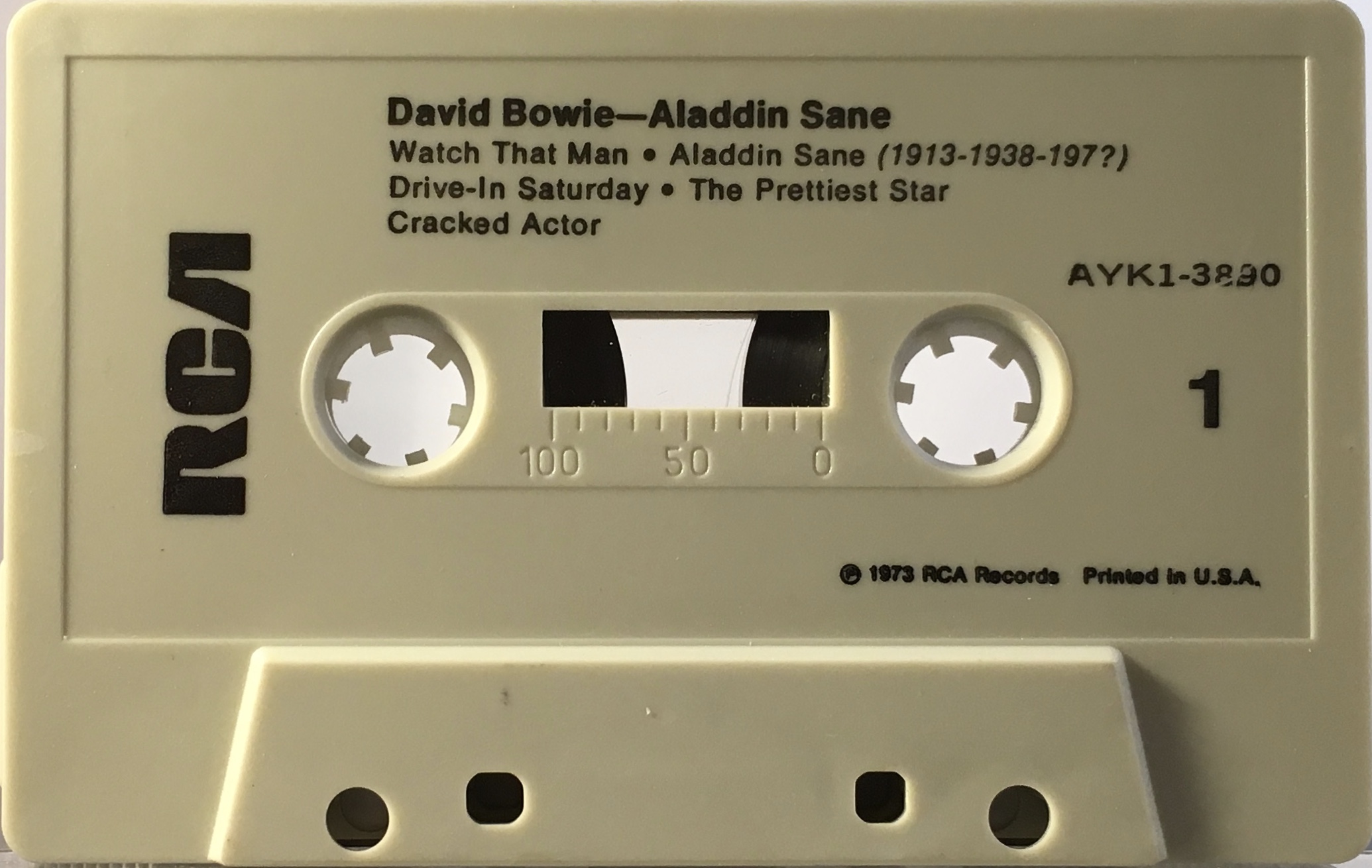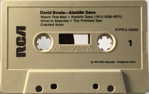 Side 1: Watch That Man; Aladdin Sane (1913-1938-197?); Drive-in Saturday; The Prettiest Star; Cracked Actor.