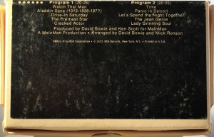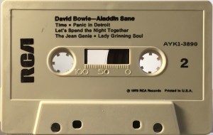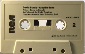 Side 2: Time; Panic In Detroit; Let’s Spend The Night Together; The Jean Genie; Lady Grinning Soul.