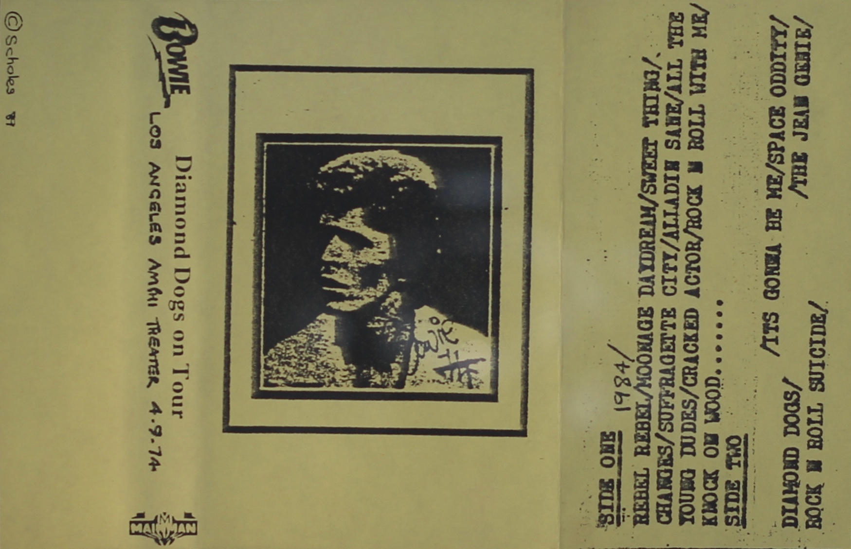 Side 1: 1984, Rebel Rebel, Moonage Daydream, Sweet Thing, Candidate, Changes, Suffragette City, Aladdin Sane, All The Young Dudes, Cracked Actor, Rock n Roll With Me