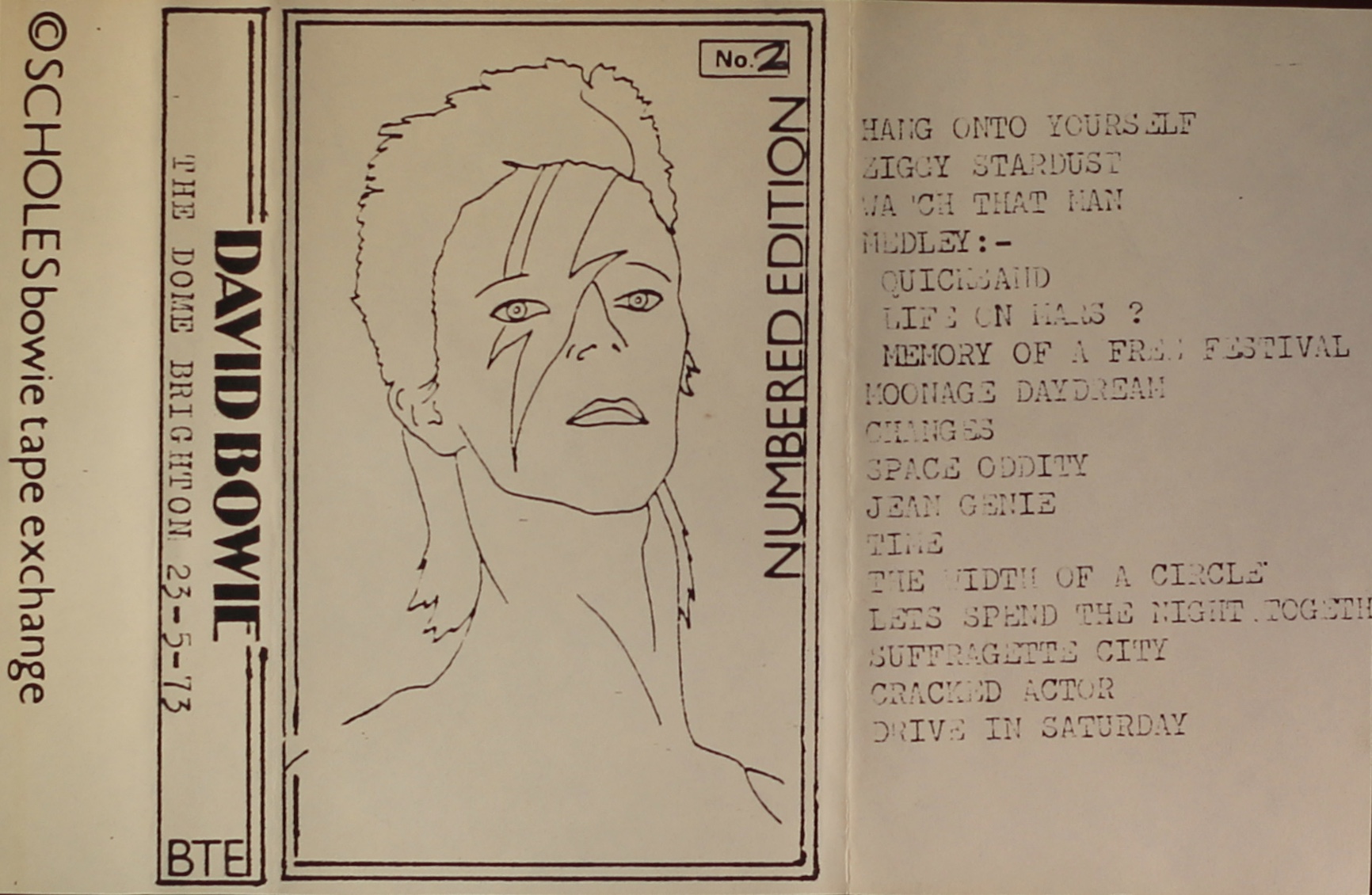 White J-card with hand drawn ‘Aladdin Sane’ cover and handwritten track list. BTE numbered edition No 2.