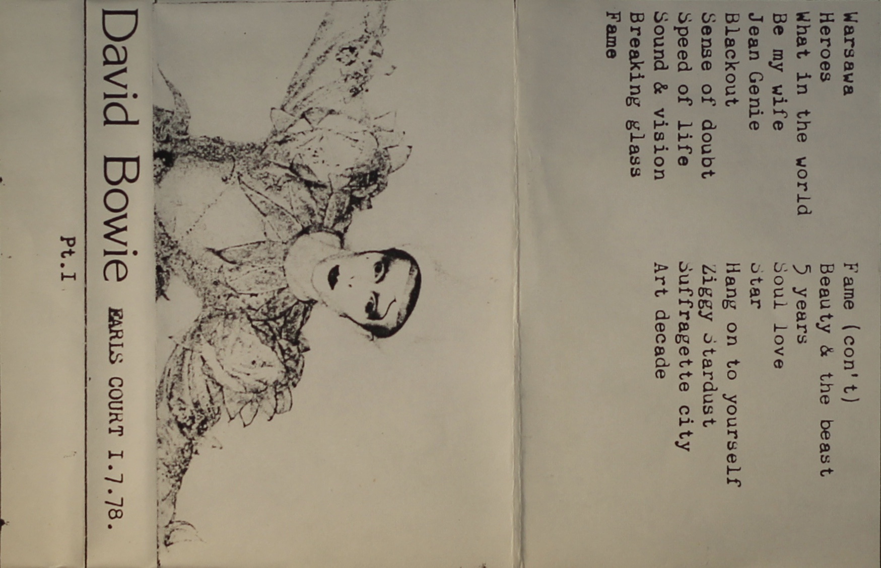 Side 2: Fame (cont); Beauty And The Beast; Five Years; Soul Love; Star; Hang Onto Yourself; Ziggy Stardust; Suffragette City; Art Decade.