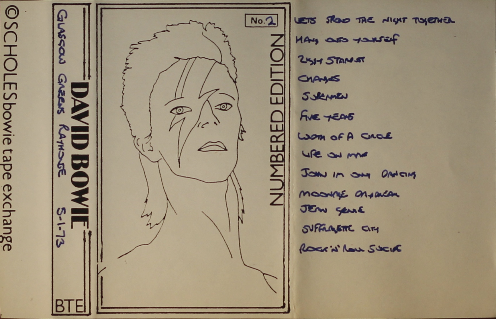 White J-card with hand drawn ‘Aladdin Sane’ cover and handwritten track list. BTE numbered edition No 2.