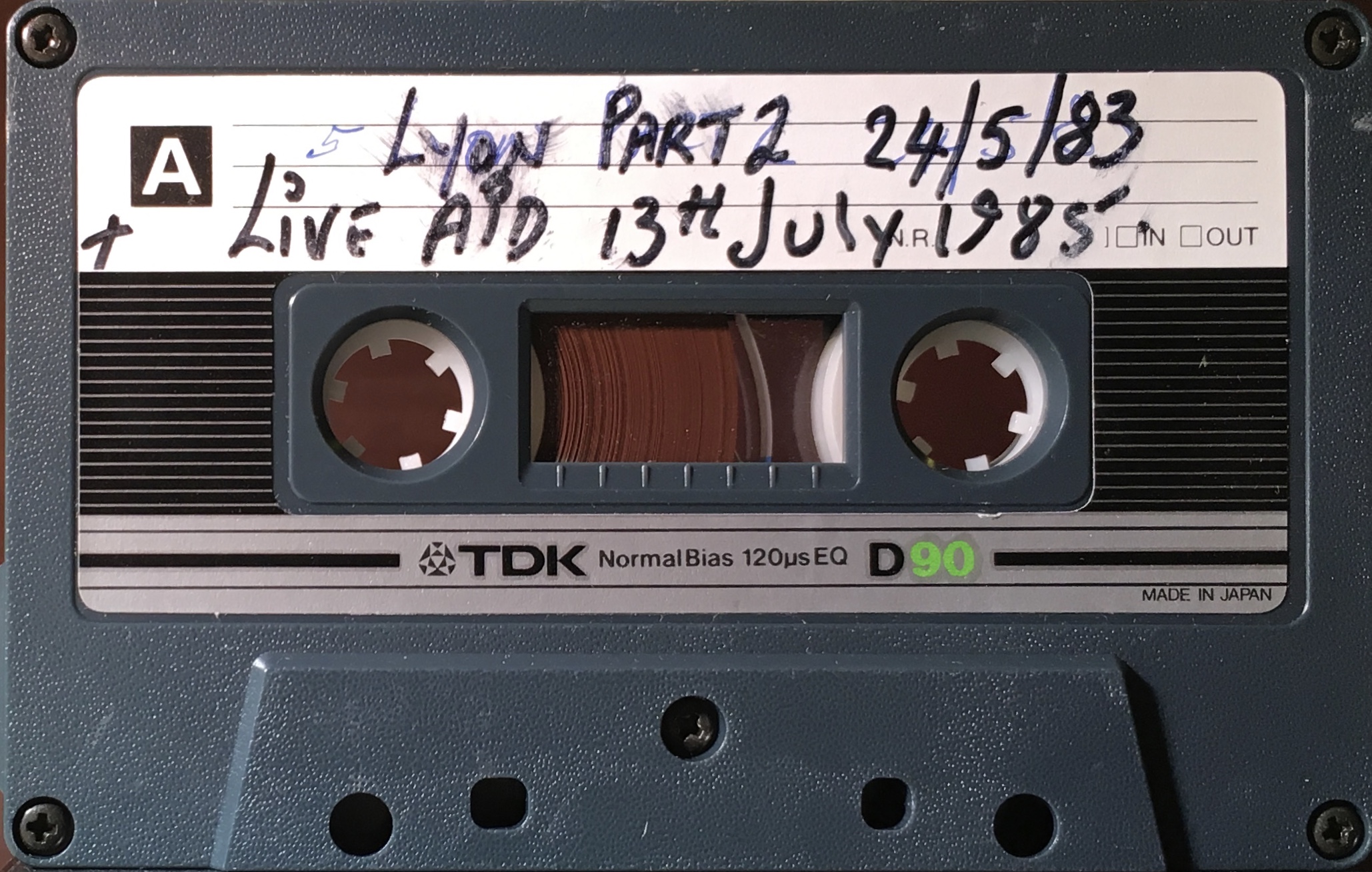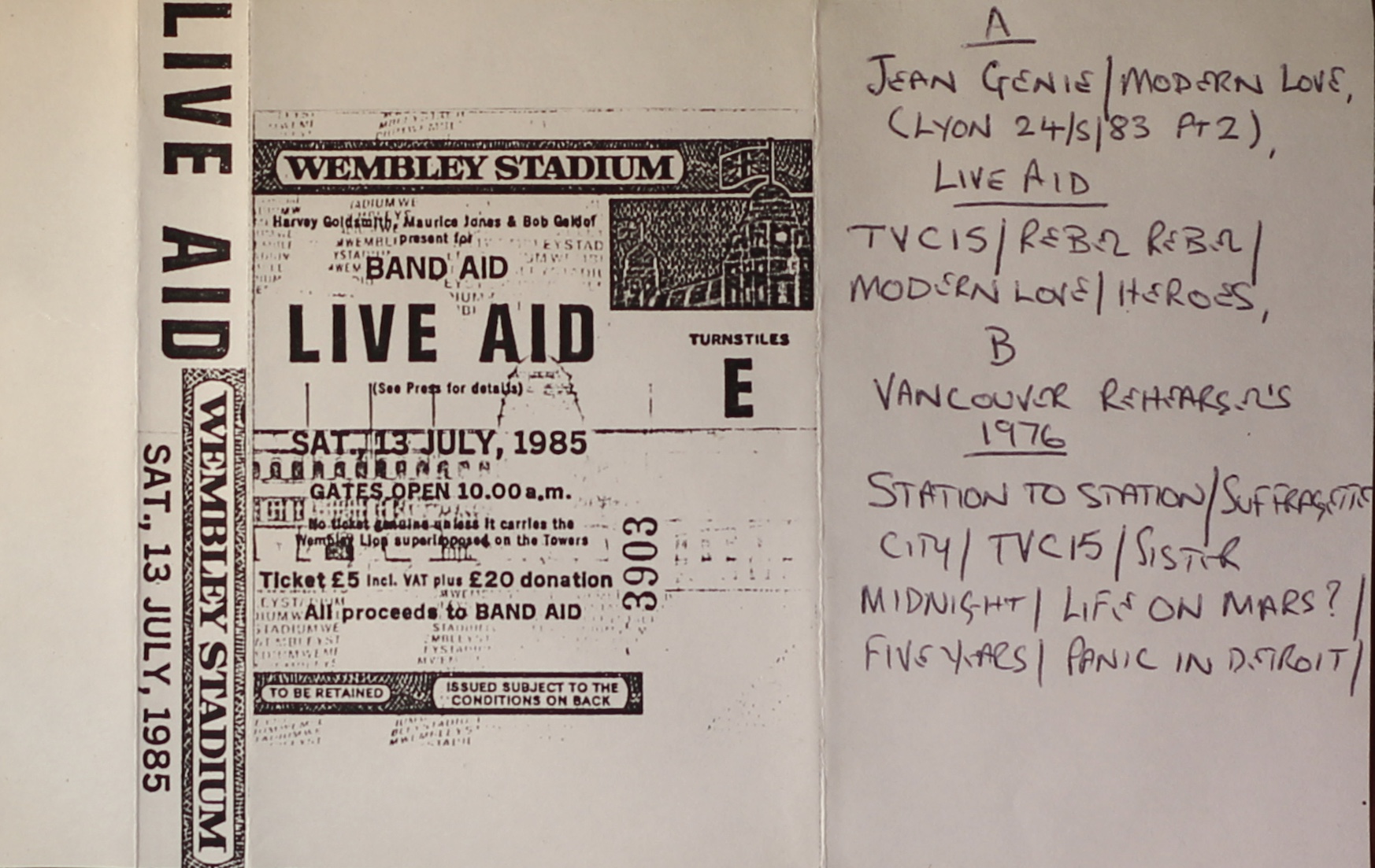 Compilation tape. Live Aid performance from 1985 strangely sandwiched between 1983 encore and 1976 rehearsals.