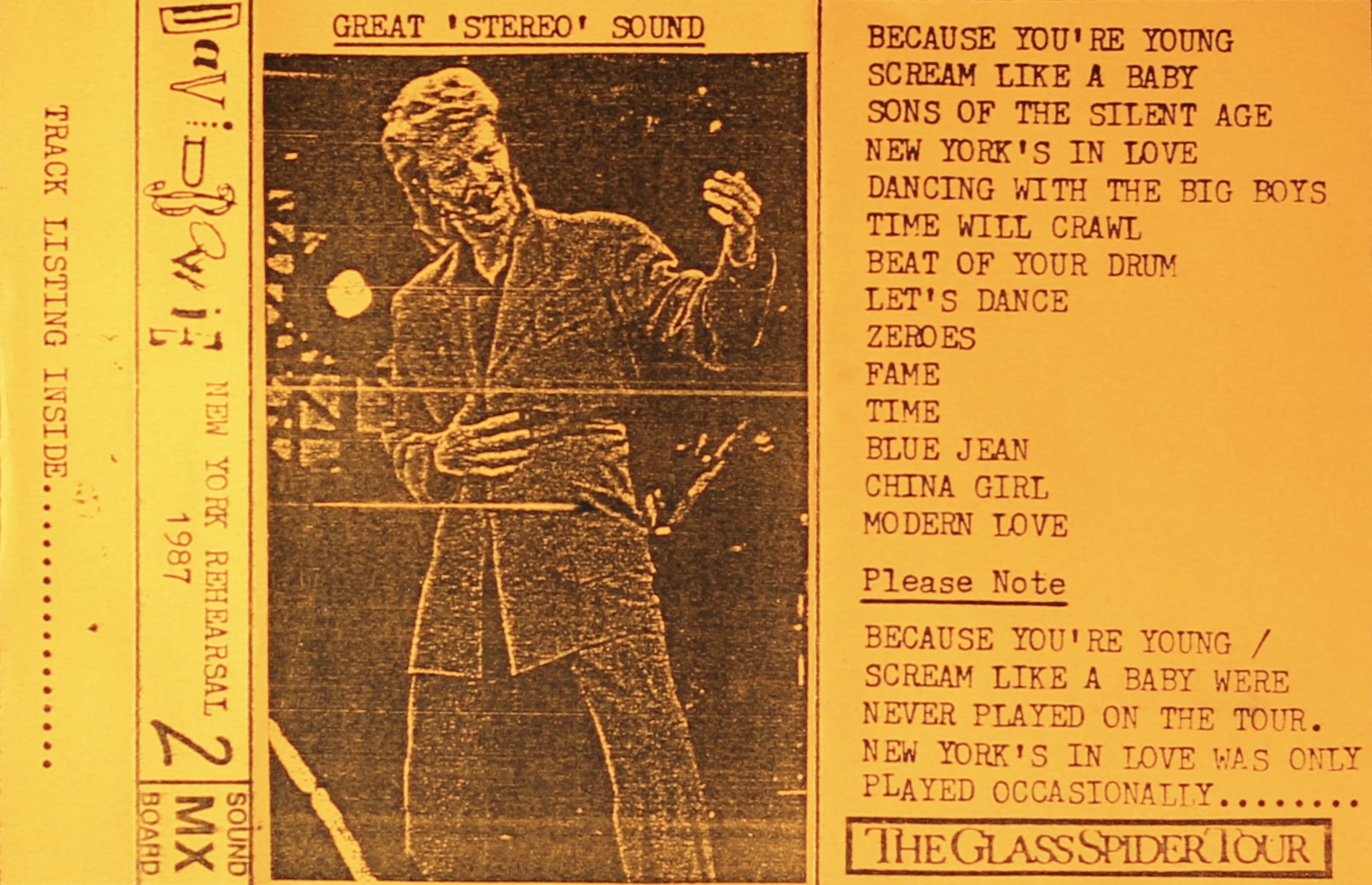 Side 2: Beat Of Your Drum; Let’s Dance; Zeroes; Fame; Time; Blue Jean; China Girl; Modern Love