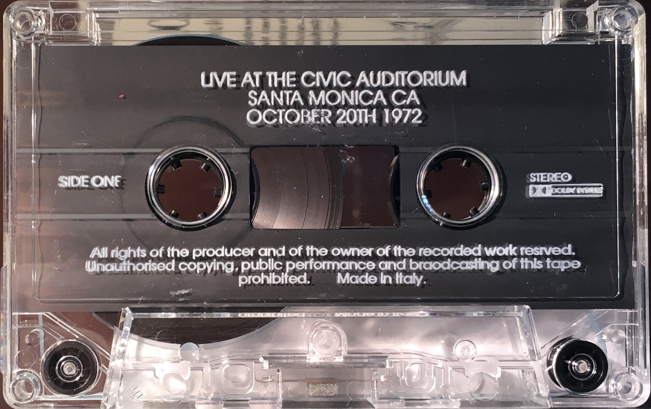 The Live Experience. Santa Monica Civic Auditorium, 20th October 1972: Italy; Unknown.