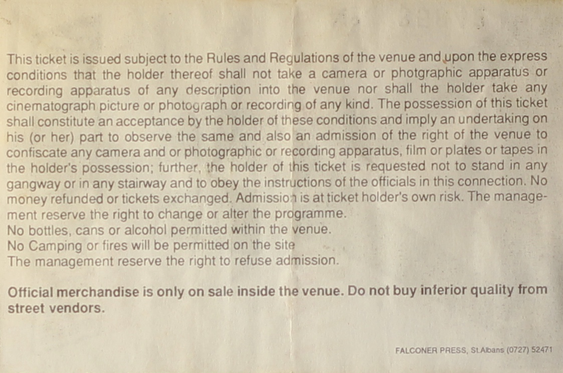 Sound + Vision Tour. Milton Keynes Bowl, Sunday 5th August 1990; 1987: UK; BTE.
