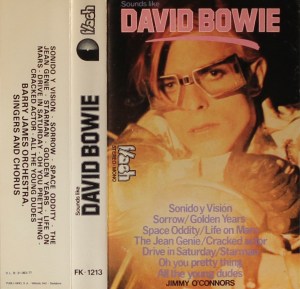 Compilation album featuring ‘The Barry James Orchestra and Singers’ performing David Bowie songs. Jimmy O’Connors’ name features on the front cover and may be the principal vocalist.