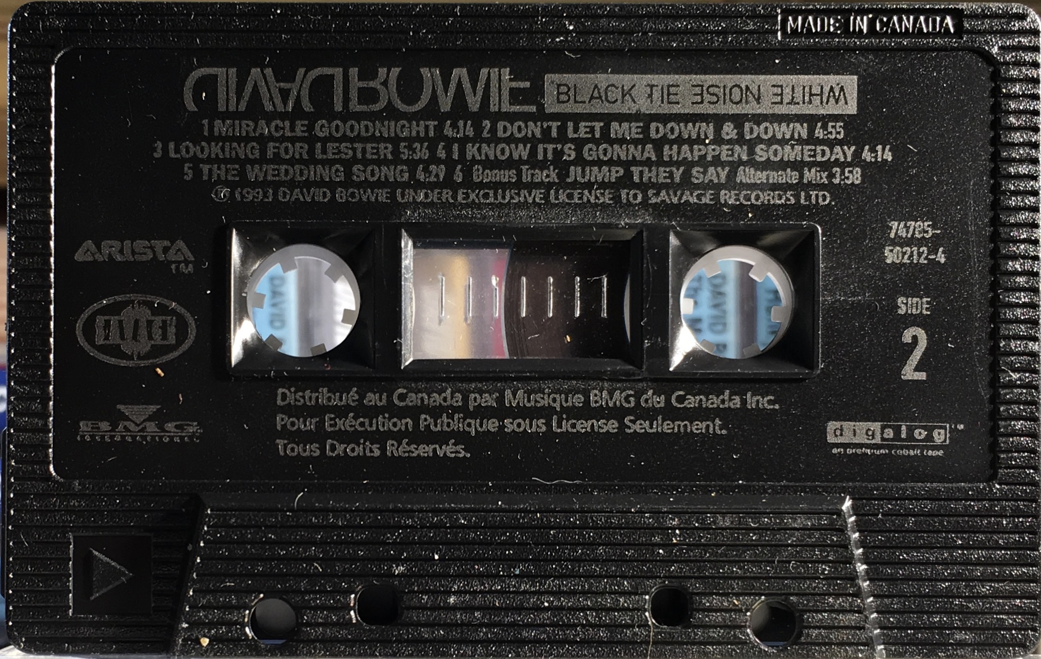 Black Tie White Noise: Canada; BMG International/ Arista/ Savage, 74321 50212 4; 1993.