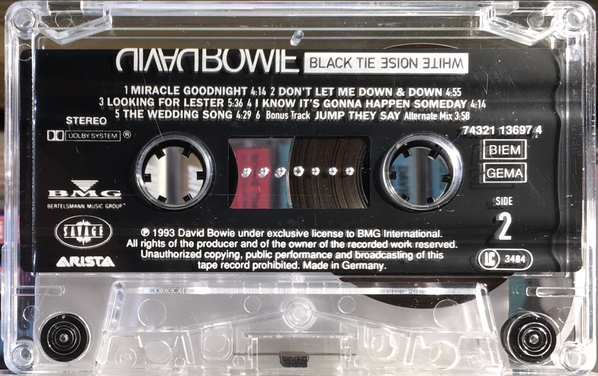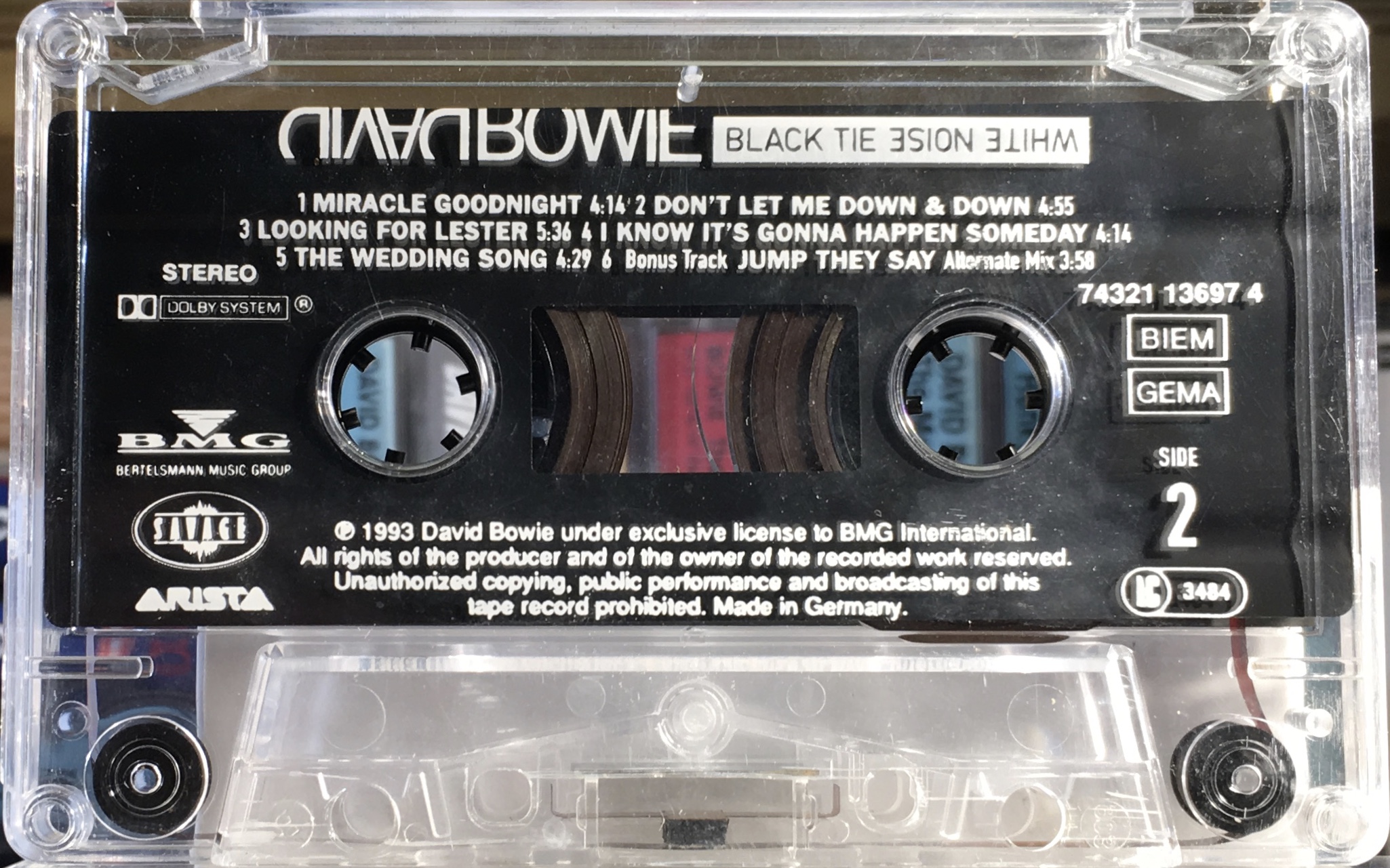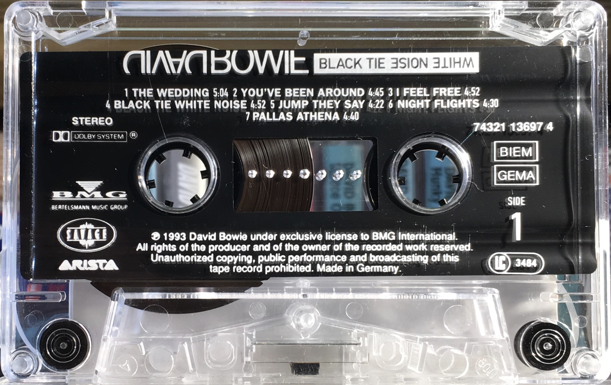 Black Tie White Noise: EU; BMG International/ Arista/ Savage, 74321 13697 4; 1993.