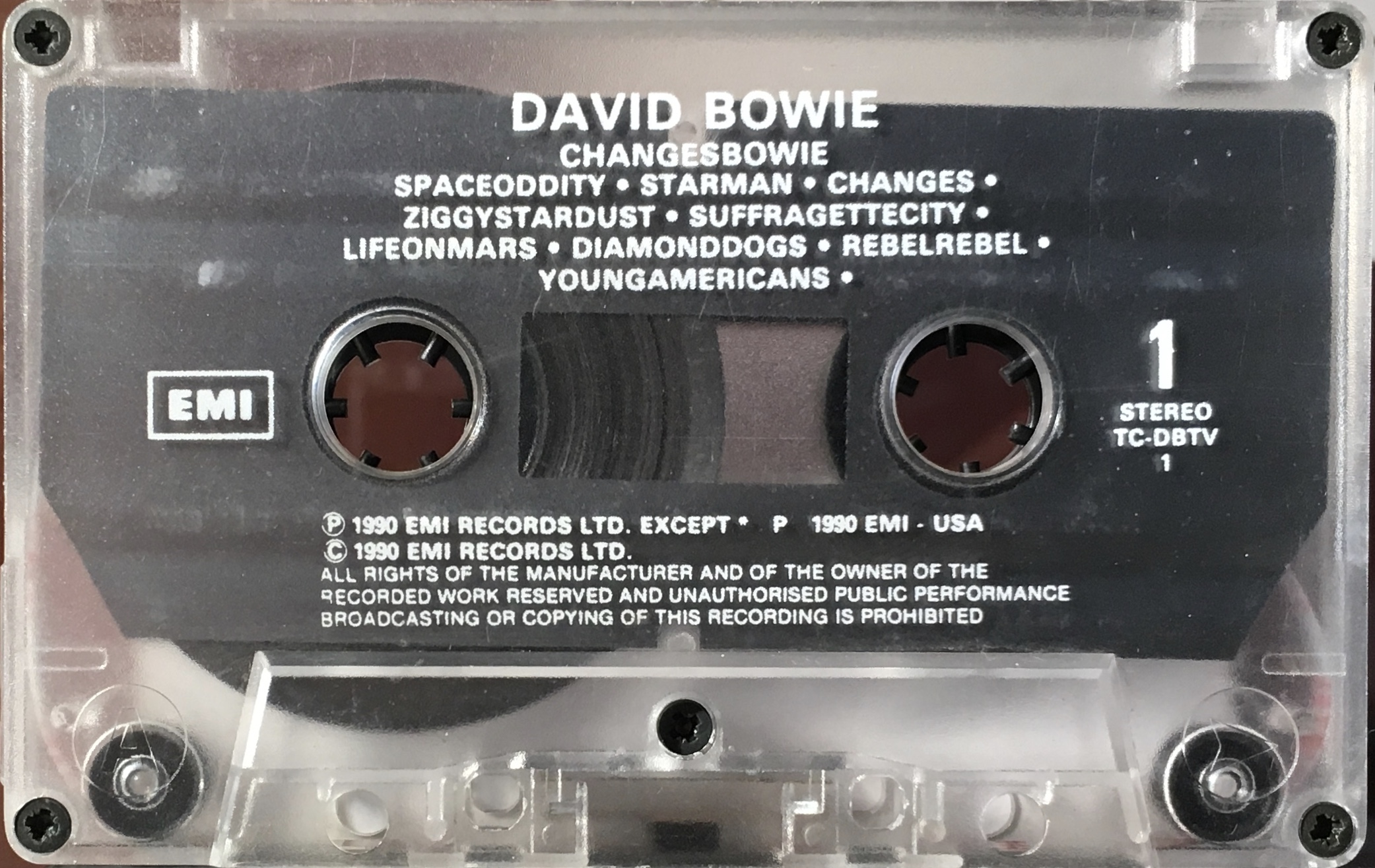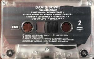 Side 2: Young Americans; Fame ’90 (remix); Golden Years; Sound And Vision; Heroes; Ashes To Ashes; Fashion; Let’s Dance; China Girls; Modern Love; Blue Jean.