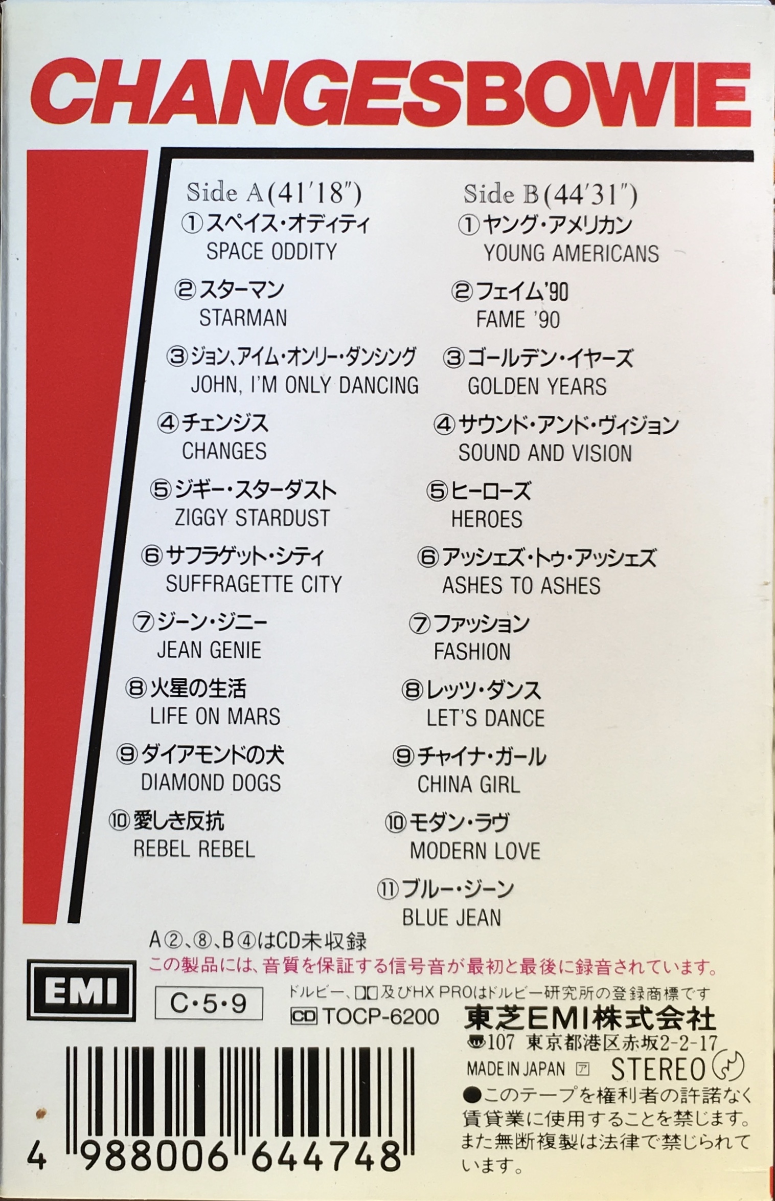 Changesbowie: Japan; EMI, TOTP 6200; 1990.