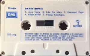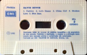 Side 2: Fashion; Let’s Dance; China Girl; Modern Love; Blue Jean.