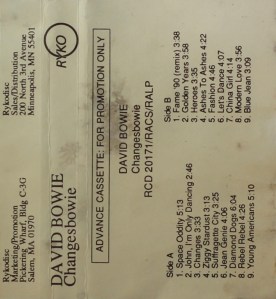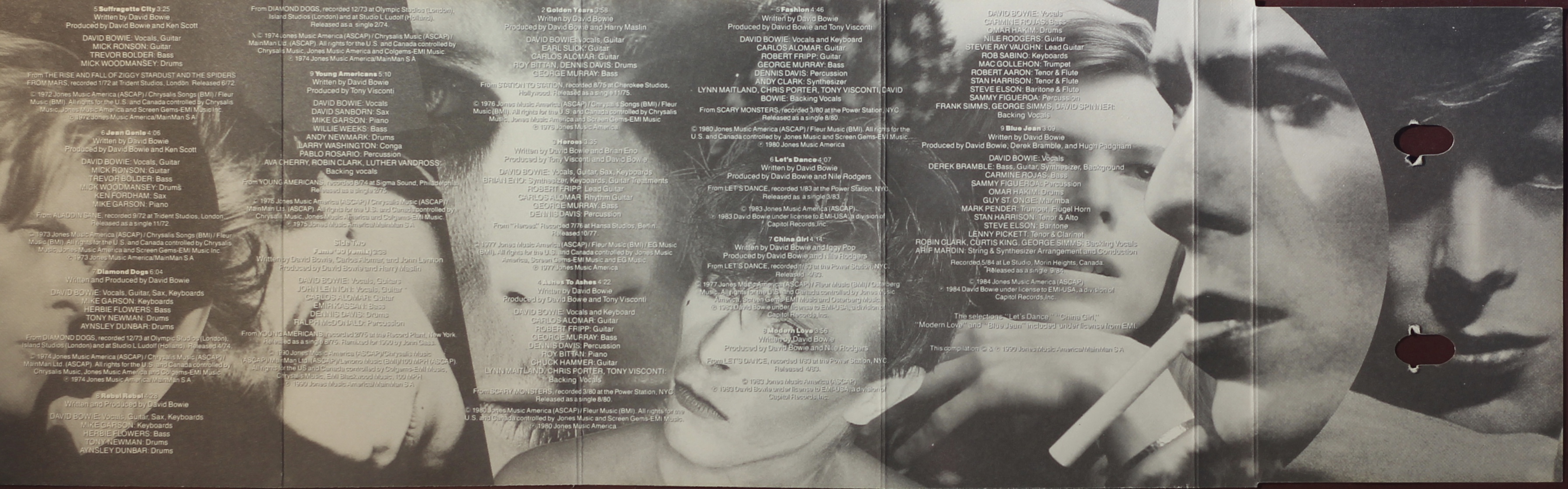 Side 2: Fame ’90 (remix); Golden Years; Heroes; Ashes To Ashes; Fashion; Let’s Dance; China Girls; Modern Love; Blue Jean.