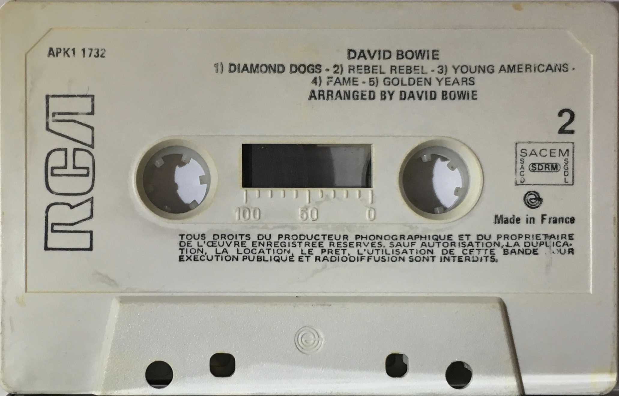 Side 2: Diamond Dogs; Rebel Rebel; Young Americans; Fame; Golden Years.
