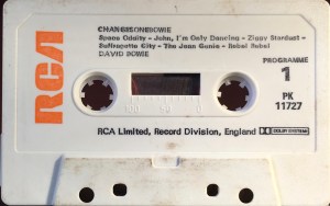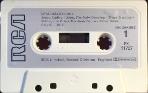 Side 1: Space Oddity; John, I’m Only Dancing; Changes; Ziggy Stardust; Suffragette City; The Jean Genie.