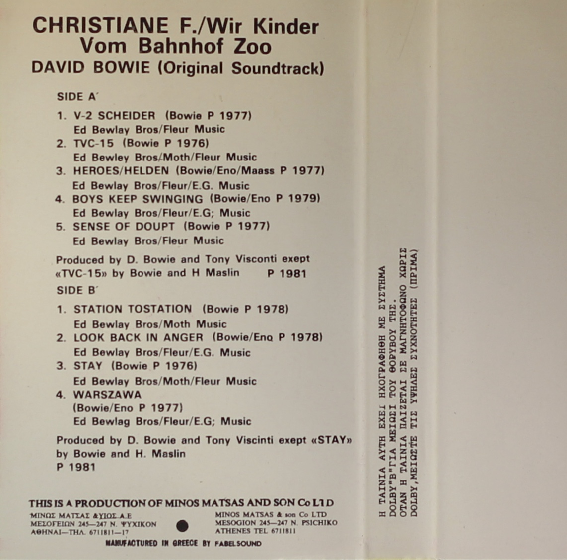 ‘Christiane F./ Wir Kinder Vom Bahnhof Zoo’ (Original Soundtrack).