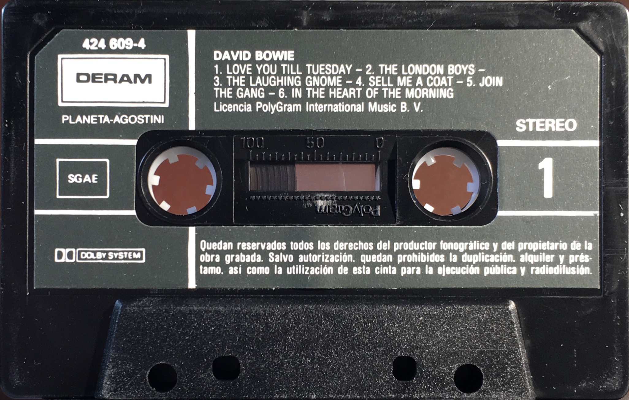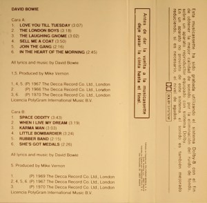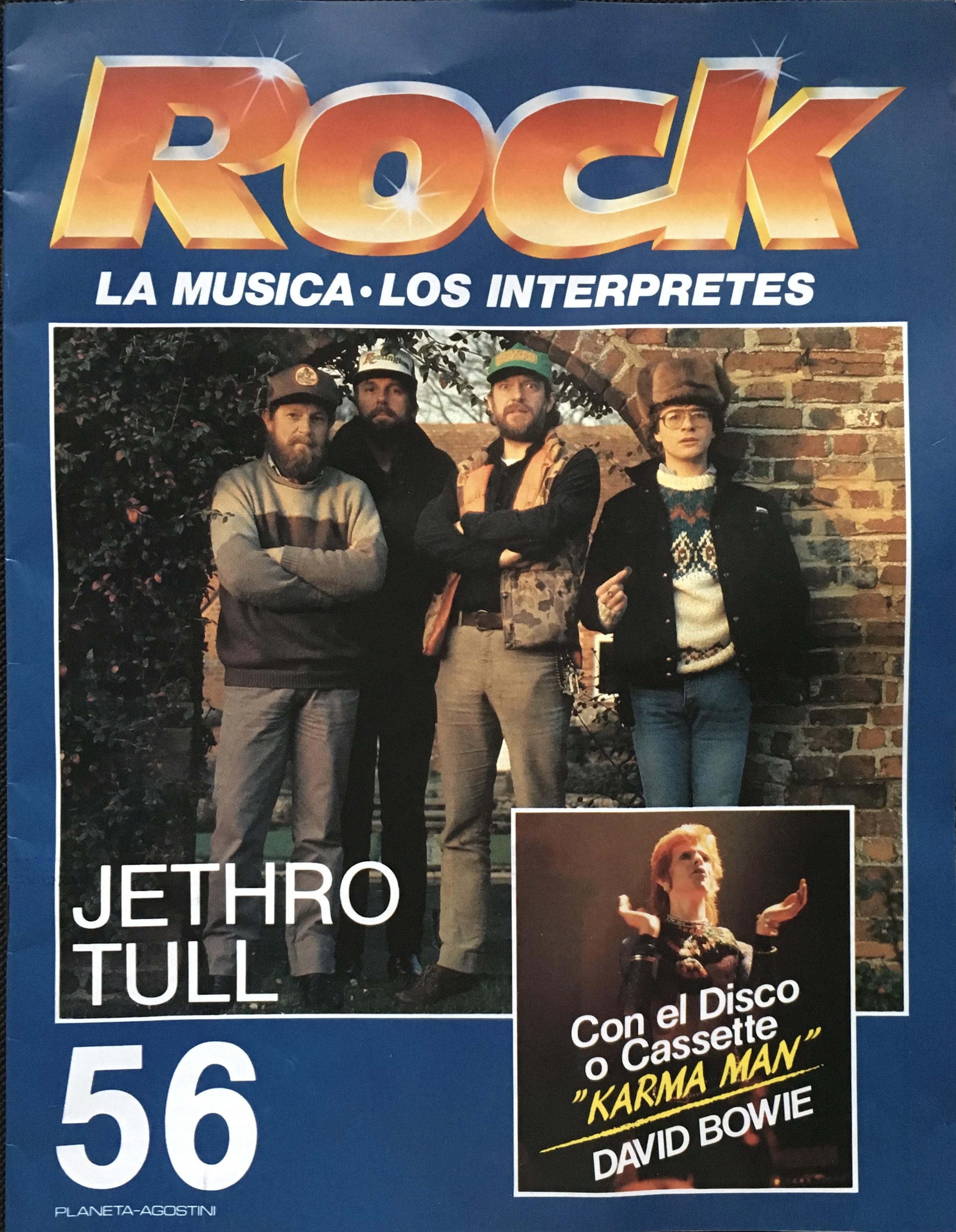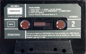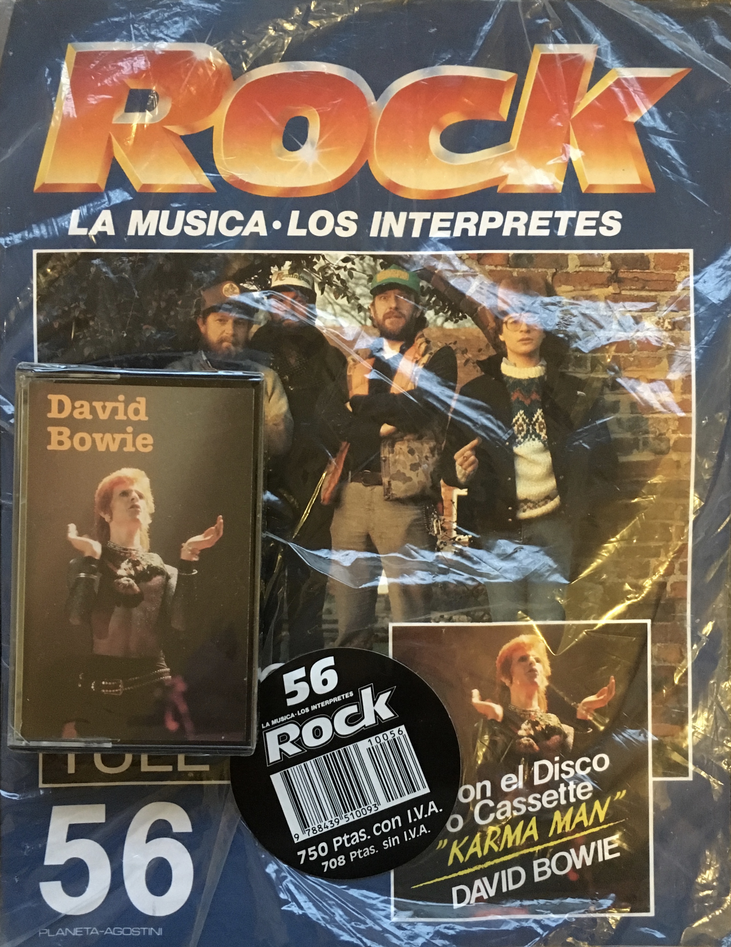 This cassettes came with Planeta Agostini’s ‘Rock (La Musica, Los Interpretes)’ magazine; Vol 4 No 56. A sealed cassette in a clear plastic bag with a copt of the magazine inside and a sticker o the front. There is no Bowie content inside the magazine only articles on Jethro Tull and King Crimson. A panel on the cover names this cassette as ‘Karma Man’.