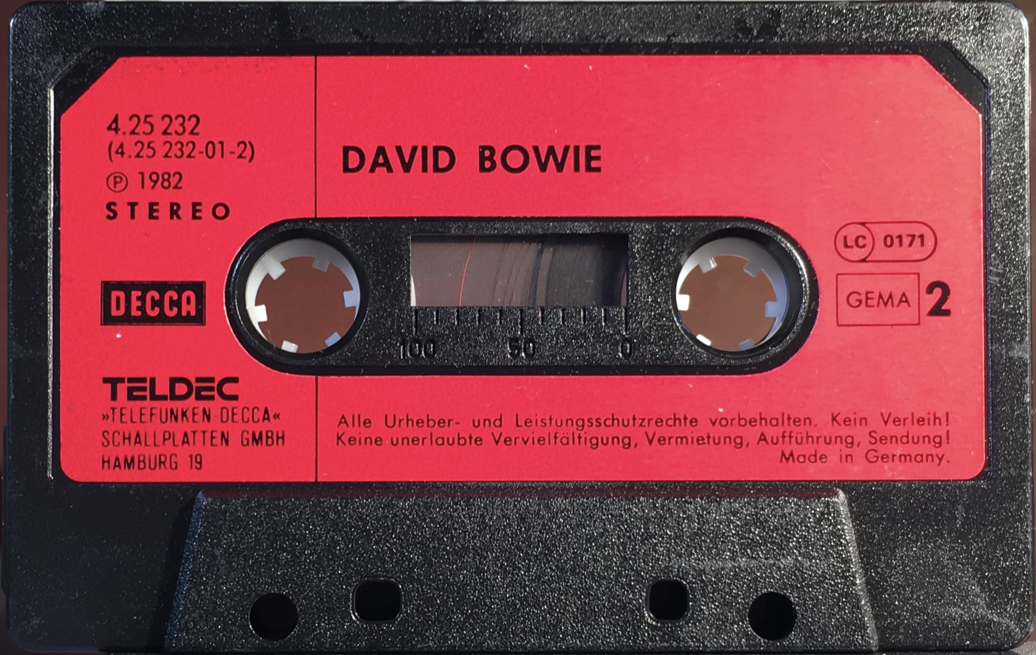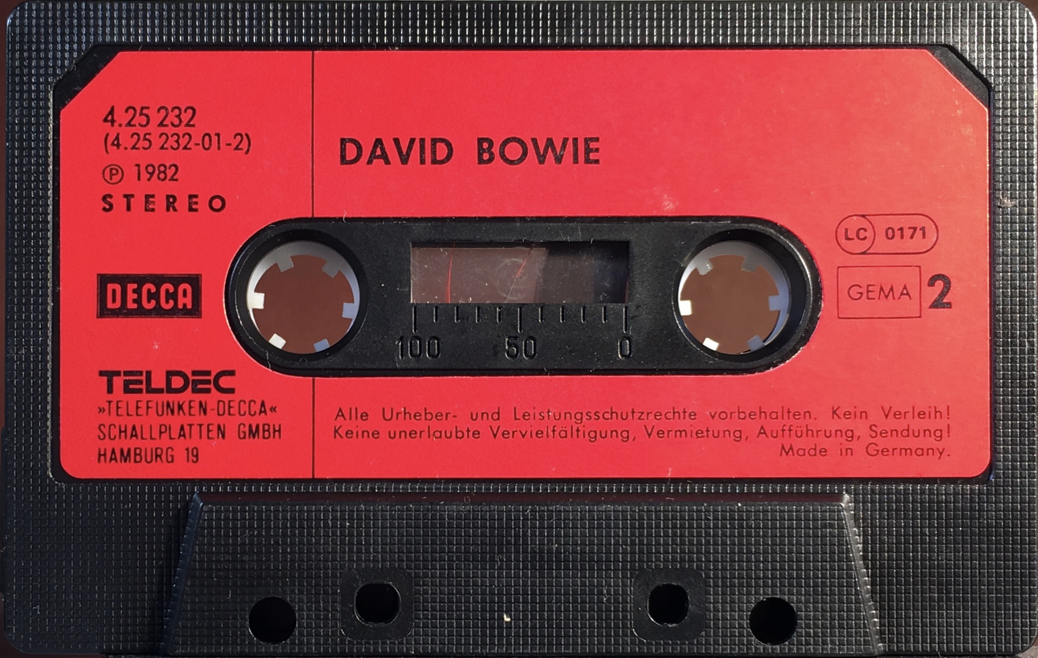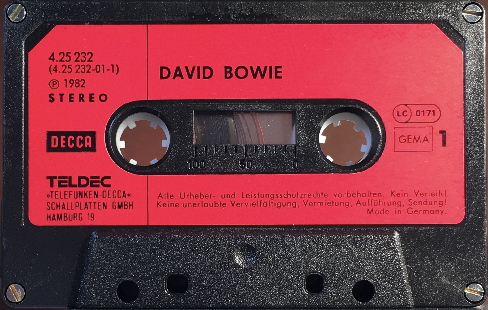 Black ink on pink paper label onto black shell; GEMA rights, information in German.This is the