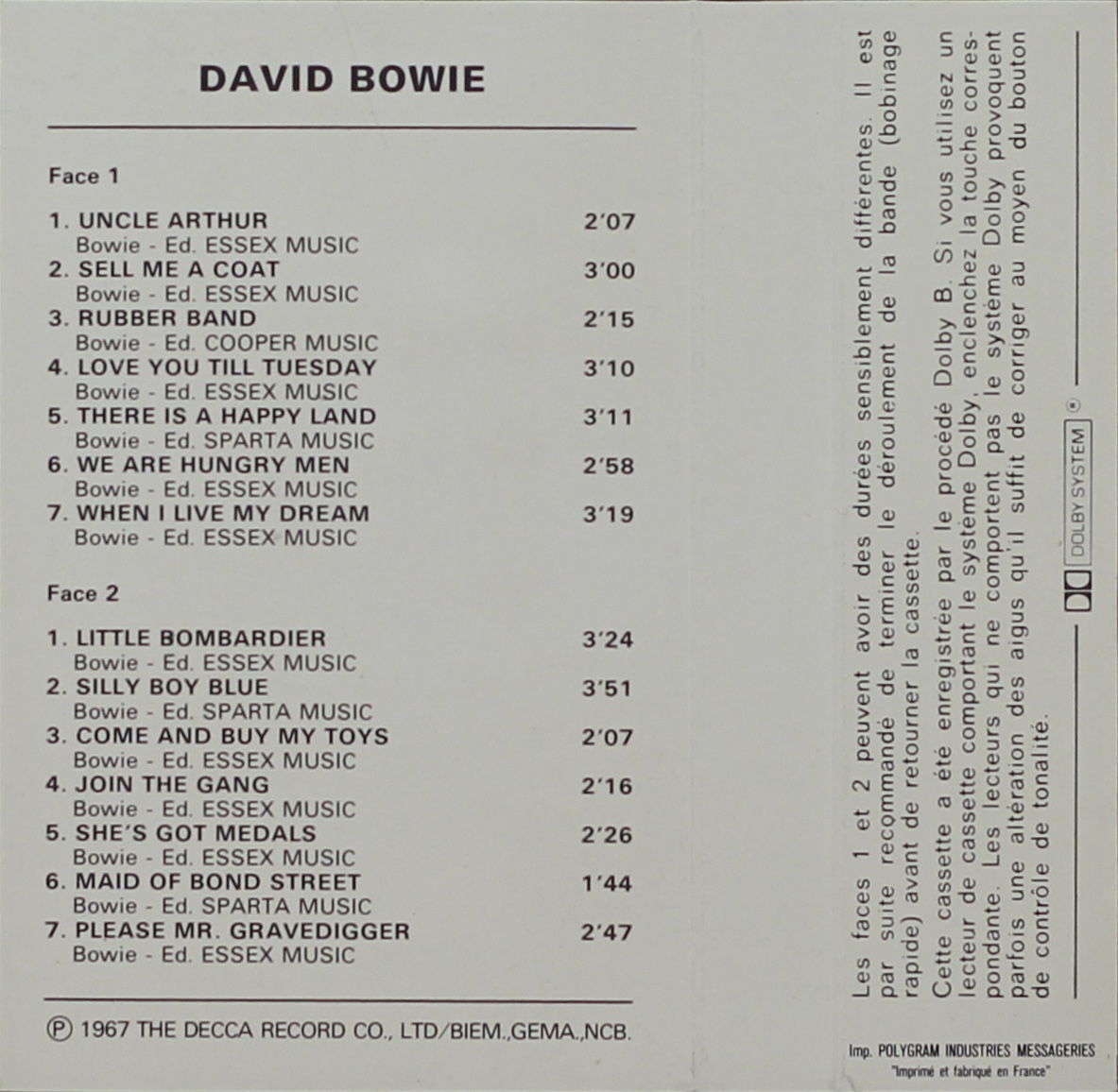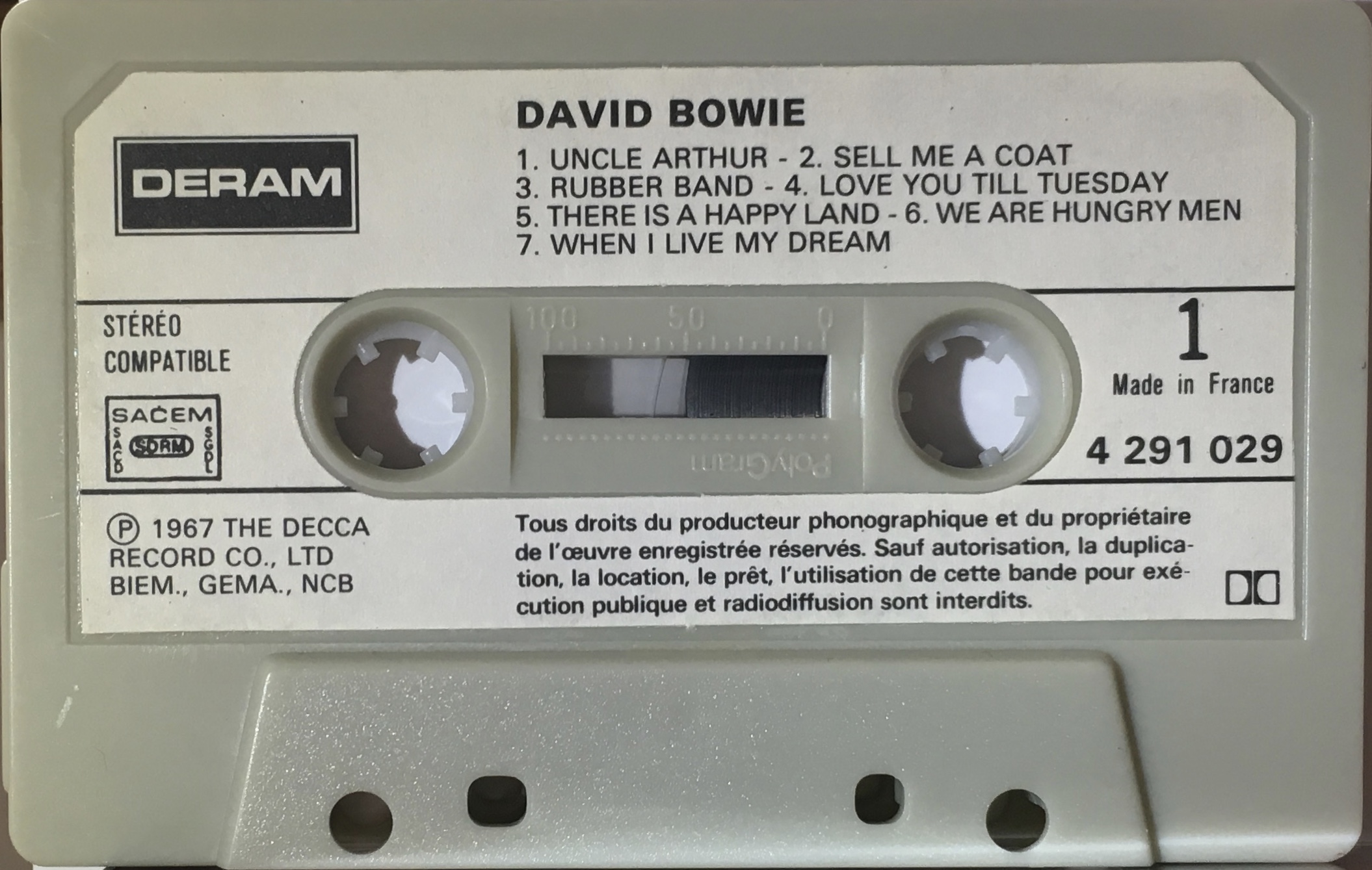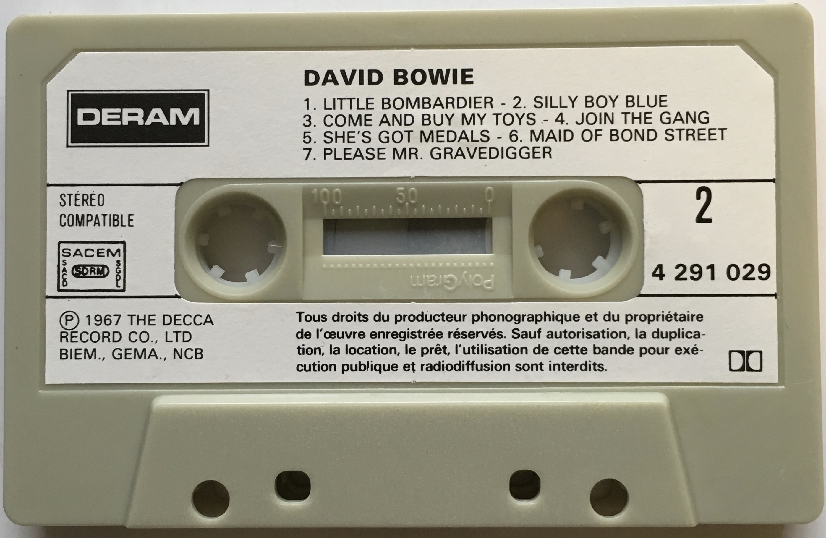 David Bowie: 1st album; France; DERAM (C.P.F. Barclay), 4 291 029; 1980?