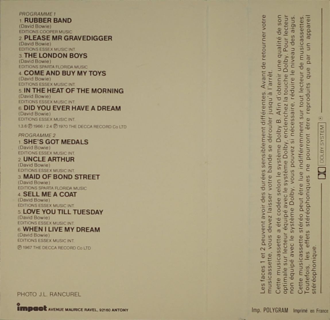 Side 2: She’s Got Medals; Uncle Arthur; Maid Of Bond Street; Sell Me A Coat; Love You Till Tuesday; When I Live My Dream.
