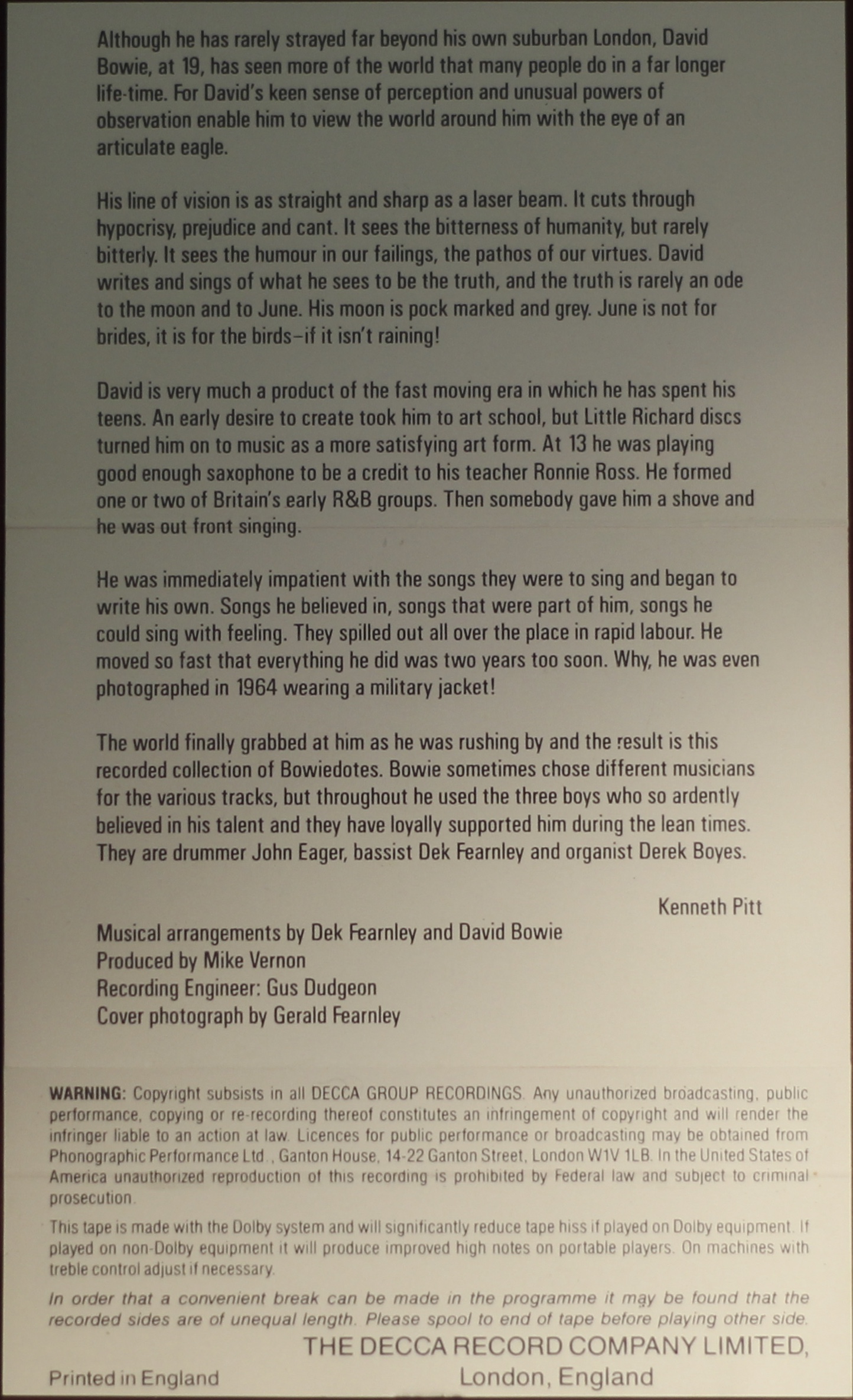 David Bowie: 1st album; UK; Decca, KDOAC1; 1984.