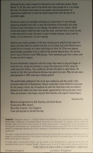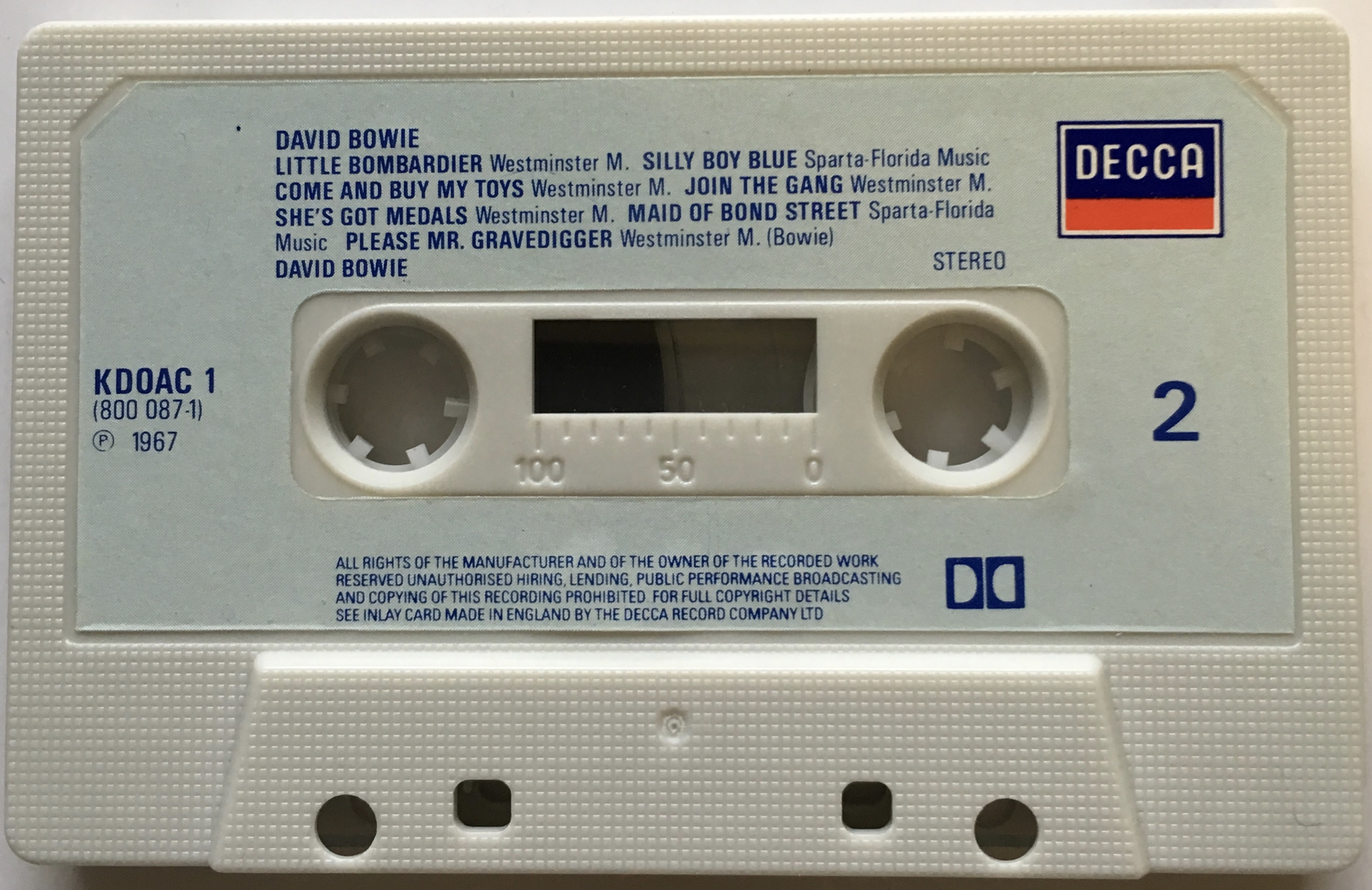 The cover has the original DERAM logo but this was a DECCA release as shown on the cassette. There’s a typo with the additional ‘S’ to ‘Maid’ on ‘Maids’ Of Bond Street, this is corrected on the cassette shell.