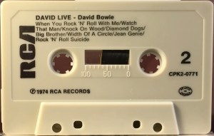 Side 2: When You Rock ‘n’ Roll With Me; Watch That Man; Knock On Wood; Diamond Dogs; Big Brother; Width Of A Circle; Jean Genie; Rock ‘n’ Roll Suicide.