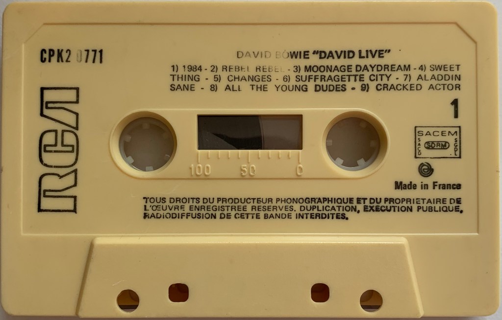 Side 1: 1984; Rebel Rebel; Moonage Daydream; Sweet Thing; Changes; Suffragette City; Aladdin Sane; All The Young Dudes; Cracked Actor.
